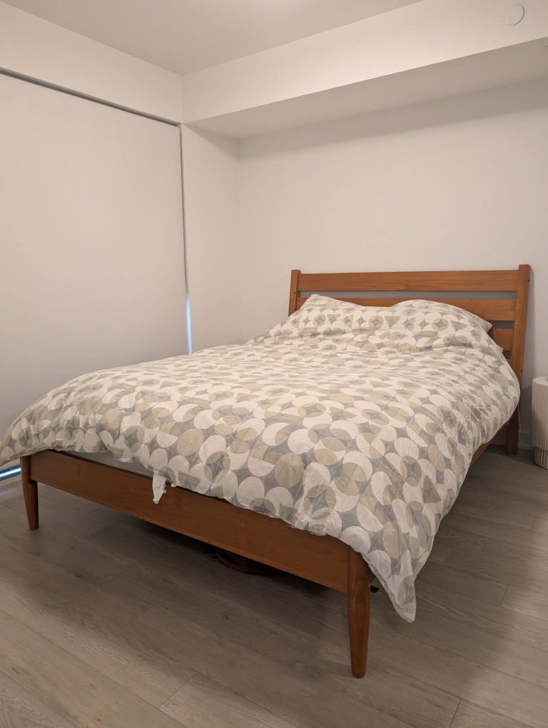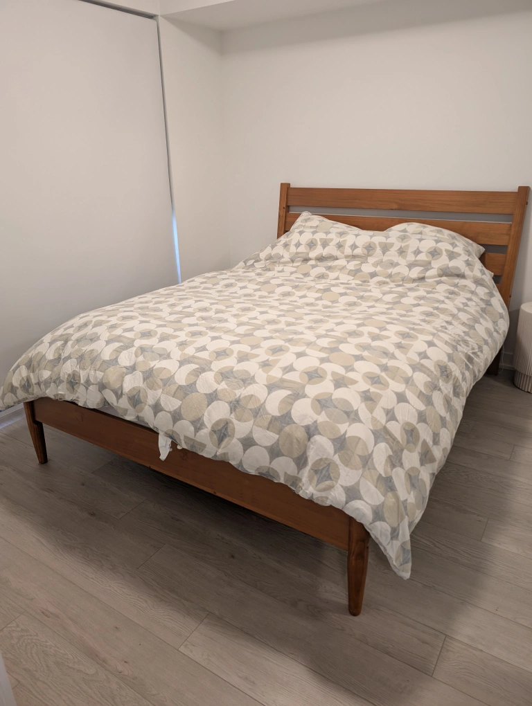 18Selling queen sized bed frame - getting bigger frame for new place Originally bought for $720 - selling for $350 https://www.wayfair.ca/furniture/pdp/allmodern-grady-solid-wood-platform-bed-c100706956.html?piid=261495700%2C261495701