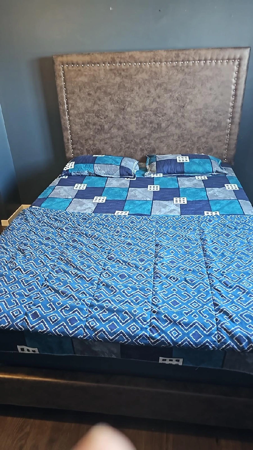 60Selling a queen size bed that includes a headboard, box mattress and mattress. The headboard is a brown colour with studded detailing. Great for a bedroom makeover!