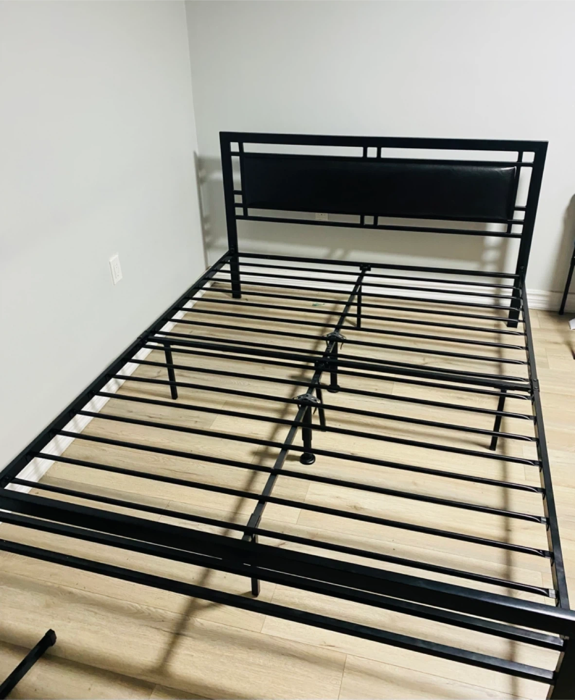 Queen sized bed frame in sleek black finish, built to last. Comes with 2 extra support legs in the middle for added stability! Easy to assemble and perfect for any bedroom setup. Ready to go โ grab it before itโs gone!