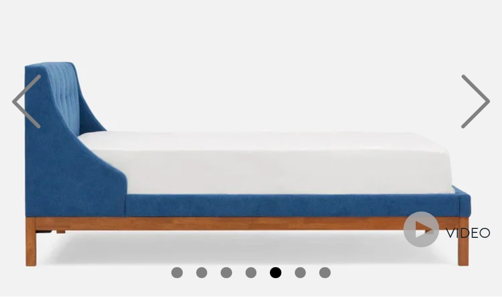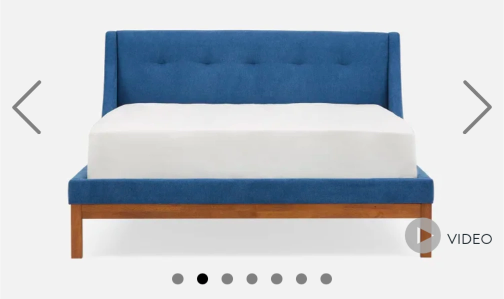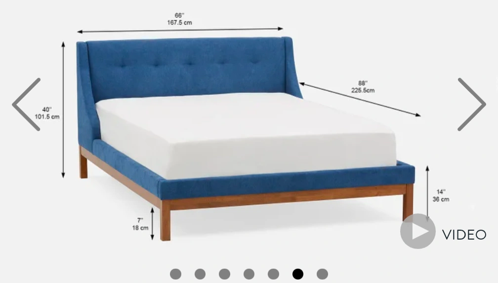 77Selling a queen size bed frame with a blue upholstered headboard and frame! The frame is in great condition and ready for a new home! This queen-size bed is a handsome choice for any bedroom and will surely be the highlight of many restful nights. Its sleek tufted headboard and sturdy frame features wooden legs with a rich lacquer finish and soft, rounded corners for added sophistication.