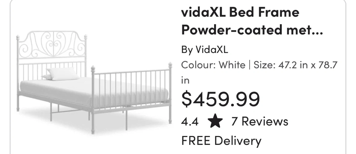 15Here's a lovely white queen bed frame! It's sized at 47.2 x 78.7 inches and has a beautiful, classic design. Originally bought for $459.99, this bed frame is ready to add a touch of elegance to your bedroom