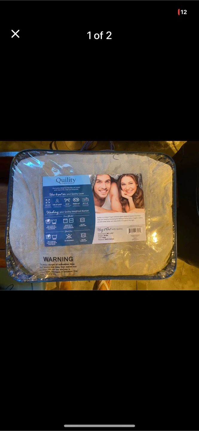 10I have a Quility weighted blanket for sale. It's grey and measures 86" x 92". Key features: - Unique 7-layer premium-grade construction - Helps relax your body by simulating the feeling of being held - May help you fall asleep faster and sleep better Material: 100% Cotton