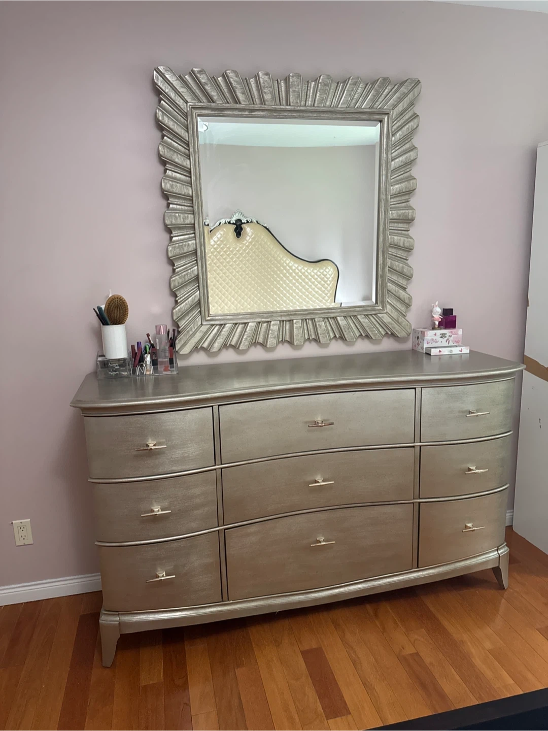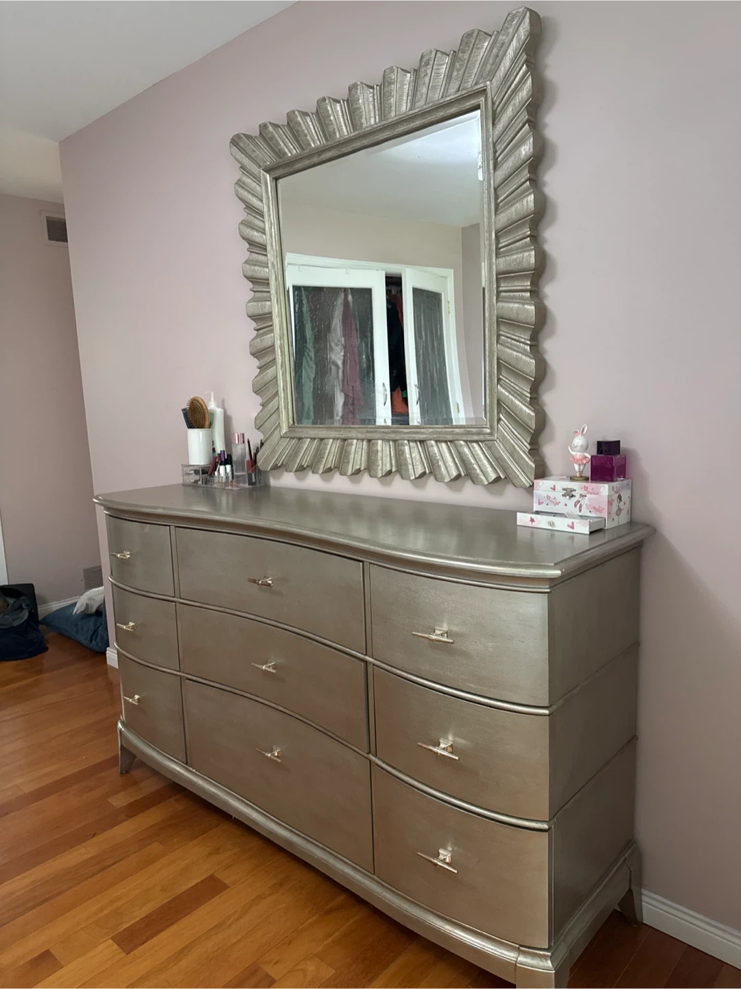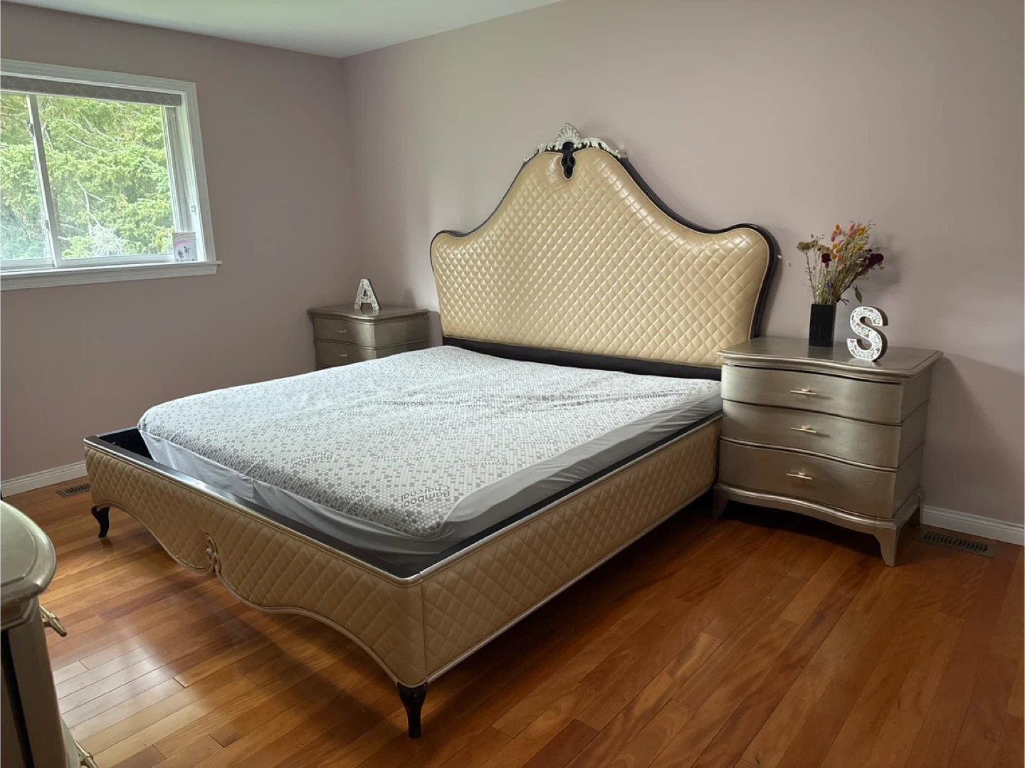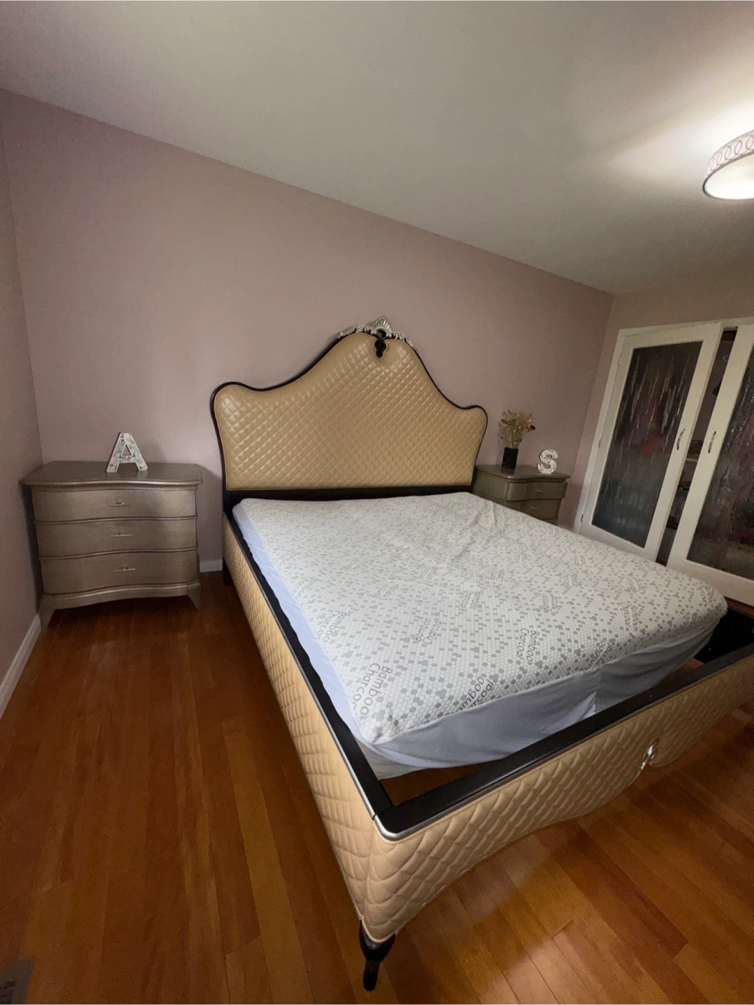 60Selling a bed frame with a quilted beige design and a matching dresser. The set is in good condition and would be a lovely addition to any bedroom. Please note that the mattress is included as welli