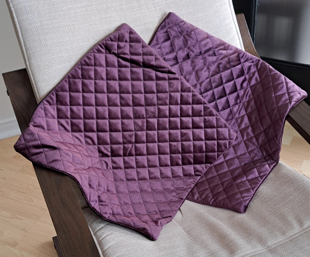 119Selling a set of two quilted throw pillow covers in a lovely purple colour. They're new and have a subtle diamond pattern and would look great on a couch or chair.