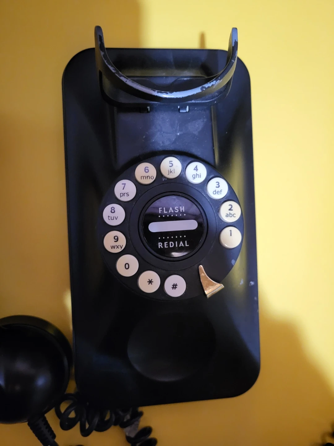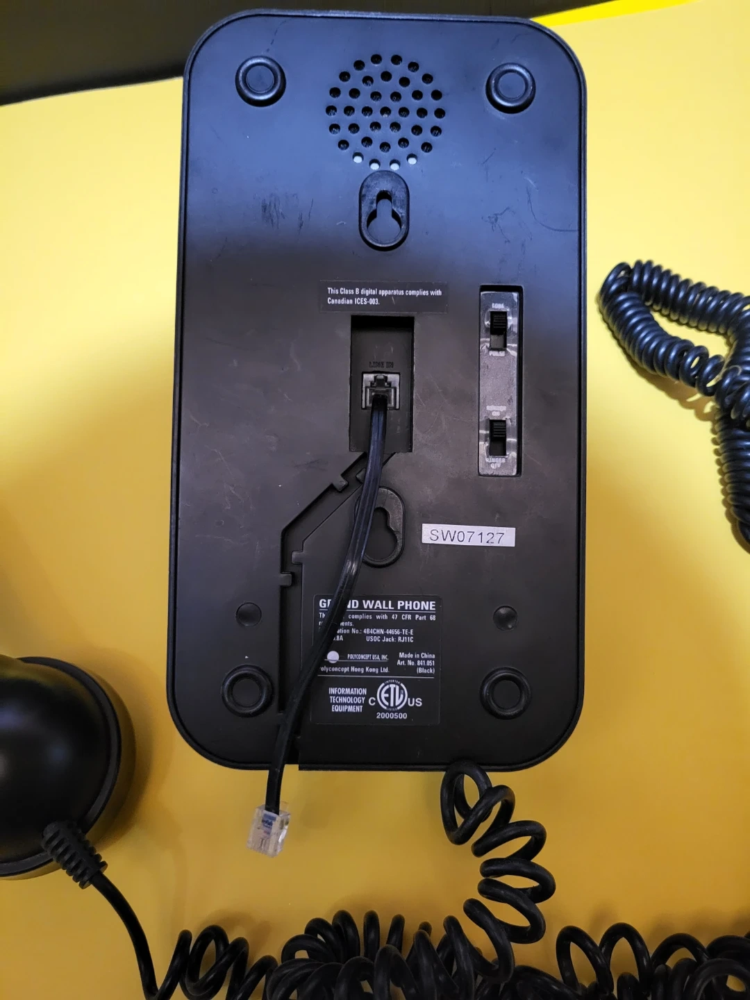 This is a black Polyconcept Grand Wall Phone with a fake rotary dial. Phone works, but i couldn't get the ringer to work.