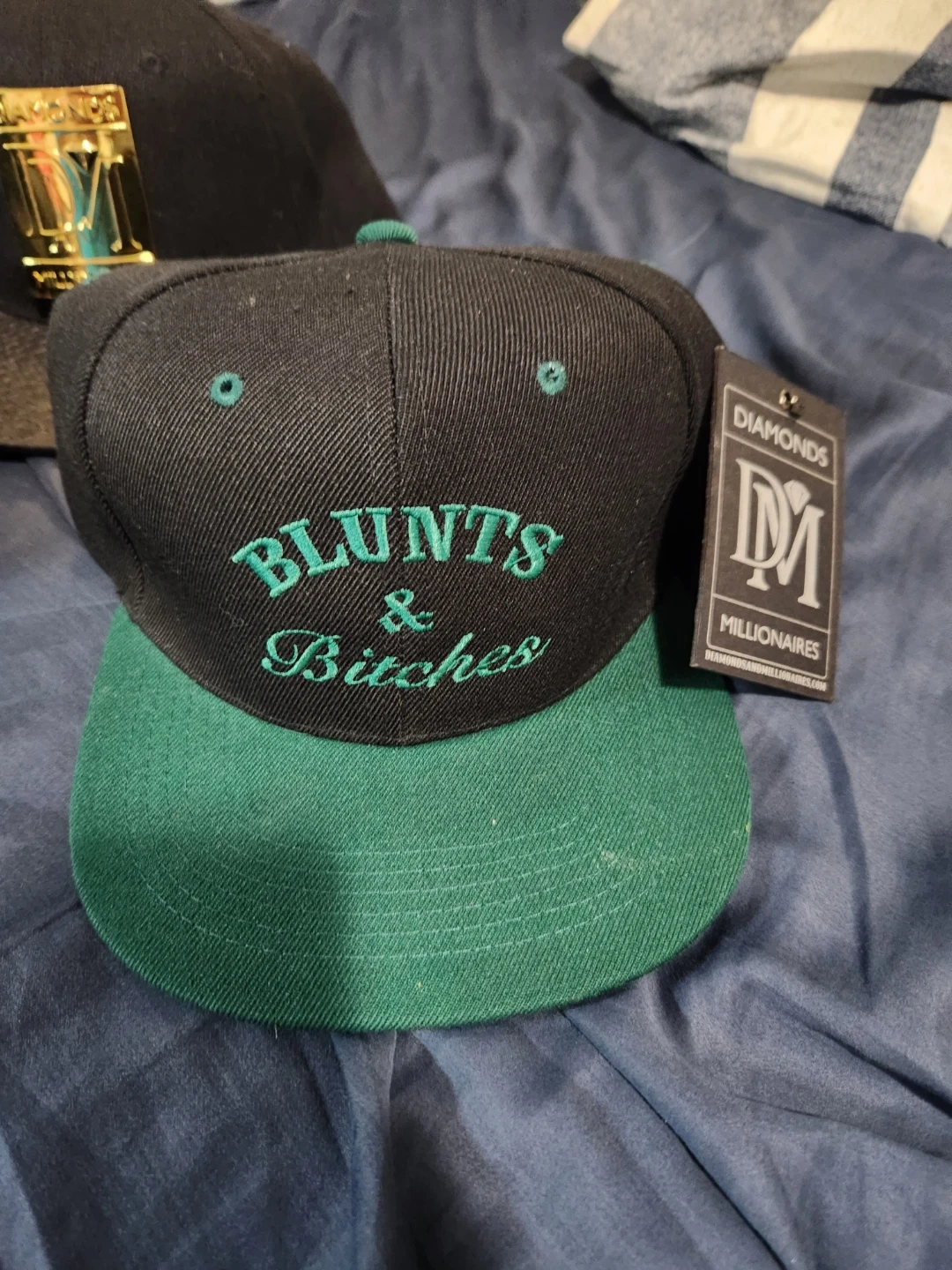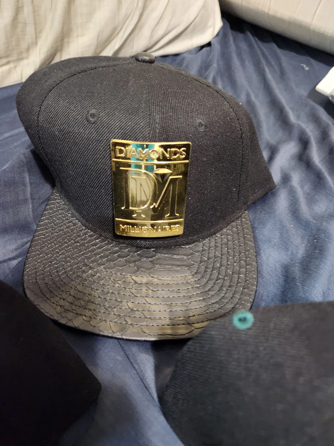 This is a black Trap Lord baseball cap. It features an embroidered globe and city skyline design on the front. The cap has a flat brim and is adjustable. $35 for all hats all.are brand new