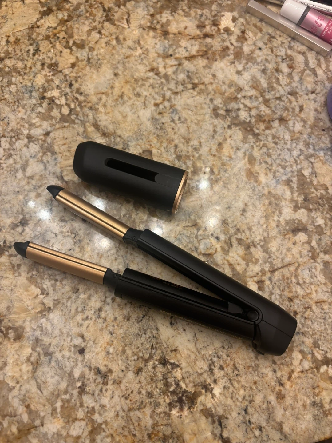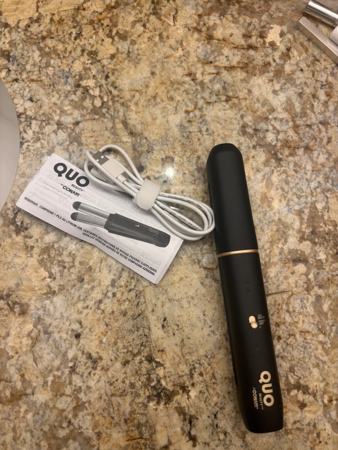 10Quo Beauty cordless mini curler + straightener. It comes with the charger and instructions. This is perfect for travel and on-the-go touch-ups.