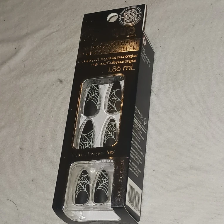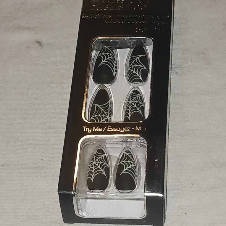26Get ready for spooky season with these Kiss Halloween limited edition false nails! They feature a cool spiderweb design on a black background. Perfect for adding a touch of Halloween fun to your look