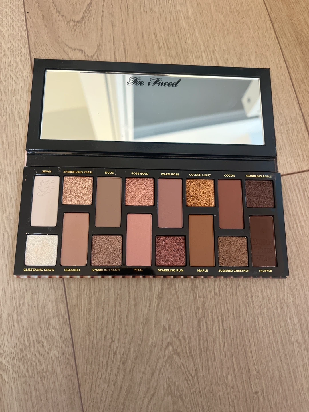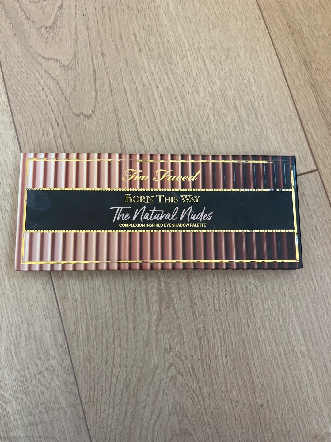 This is the Too Faced Born This Way The Natural Nudes eyeshadow palette. It has 16 complexion-inspired shades. Comes with a mirror and a variety of matte and shimmer finishes.