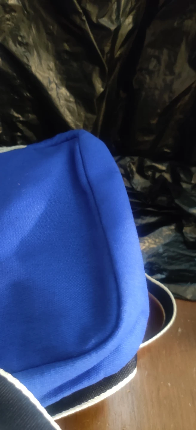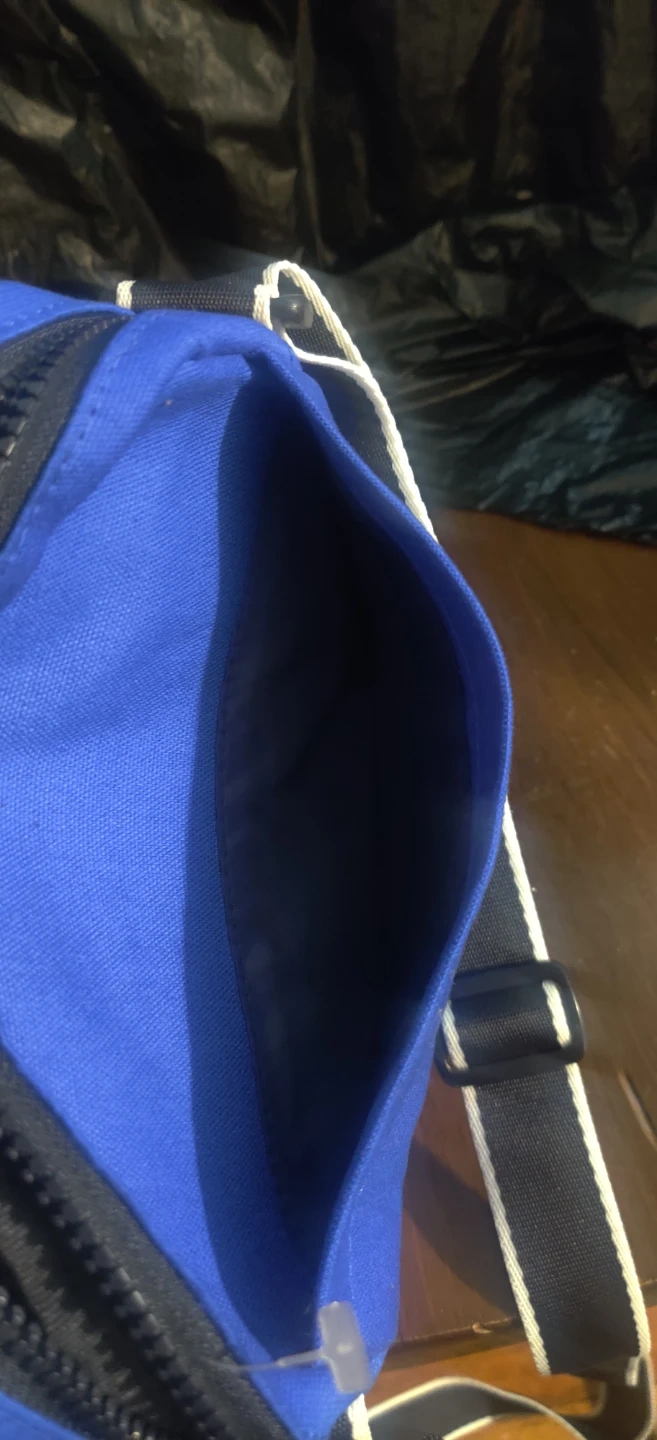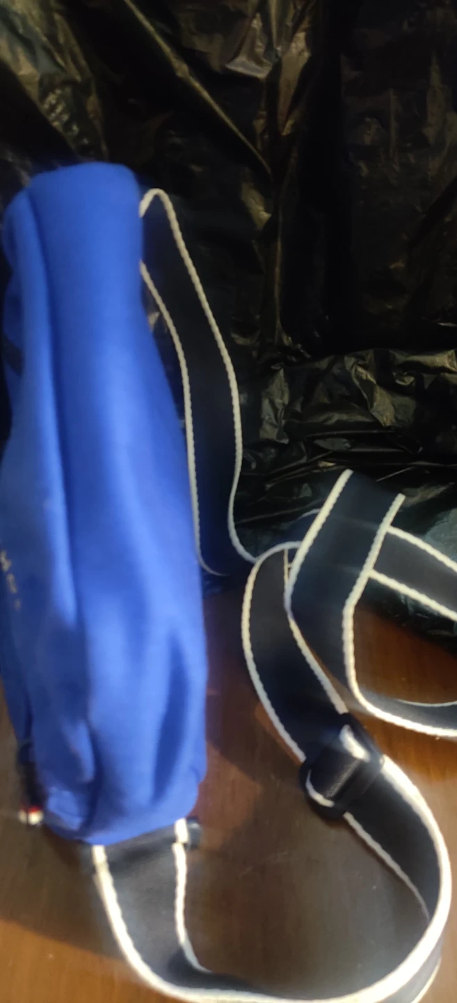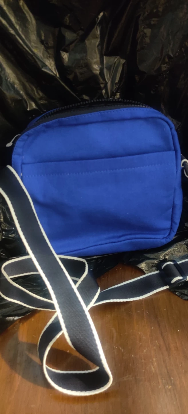This is a blue Tommy Hilfiger crossbody bag. It's made of durable fabric and features a main zippered compartment and a front zippered pocket. Also hace a back picket. The adjustable strap has white and navy trim.New without tags
