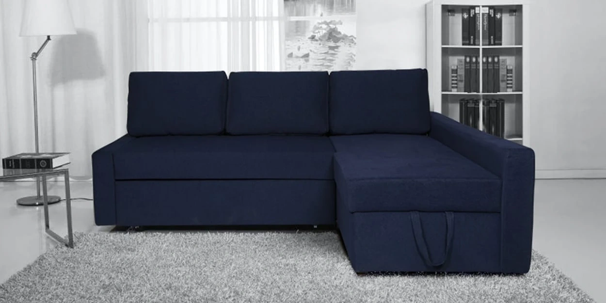 Dark Blue Sectional Sofa L shape with Storage