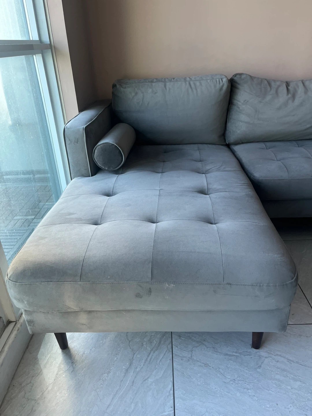 Structube Grey Velvet Sectional Sofa with Chaise **MOVING SALE**