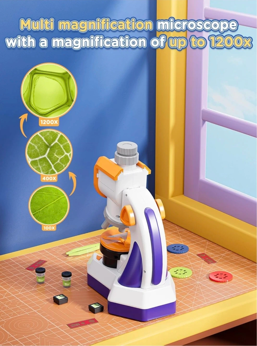 Perfect Gift for Kids Beginners: Come with 100x, 400x, and 1200x magnifications, double focus system and bottom LED light source. The microscope kit offers a view of the microbial world that will captivate kids and adults alike
