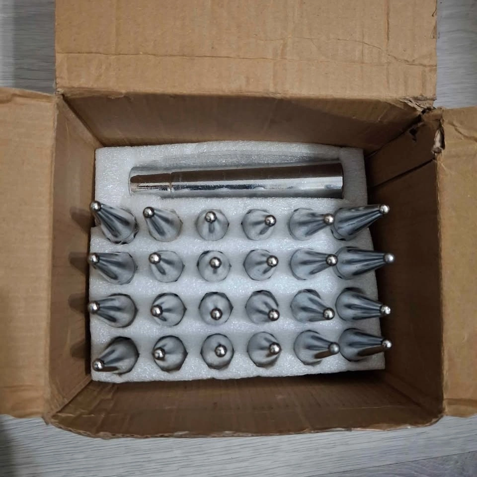 This package includes 24 Orion Motor Tech 14mm x 1.5 lug nuts with a 60° conical seat (4.4" high by 0.9" wide), a socket, and instructions for use.
