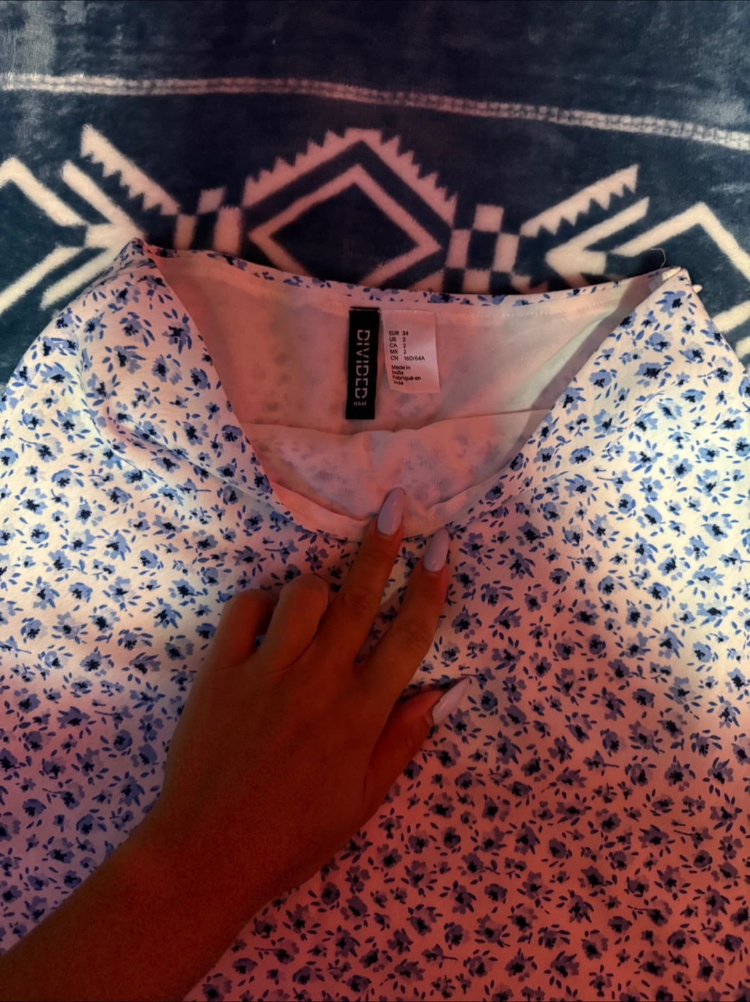 Selling a cute floral mini skirt from H&M! It's a size small and features a lovely blue and white floral pattern. Perfect for spring or summer!