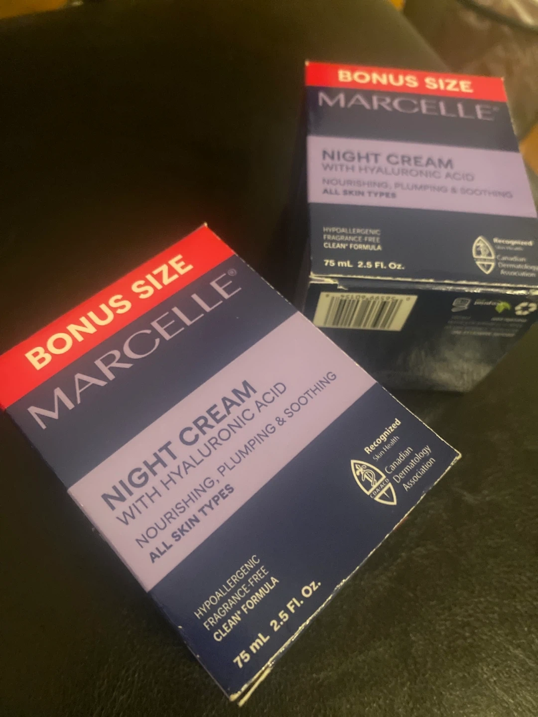 Marcelle Night Cream with Hyaluronic Acid. This bonus size is nourishing, plumping, and soothing for all skin types. It's hypoallergenic, fragrance-free, and a clean formula. 75 mL (2.5 Fl. Oz.).