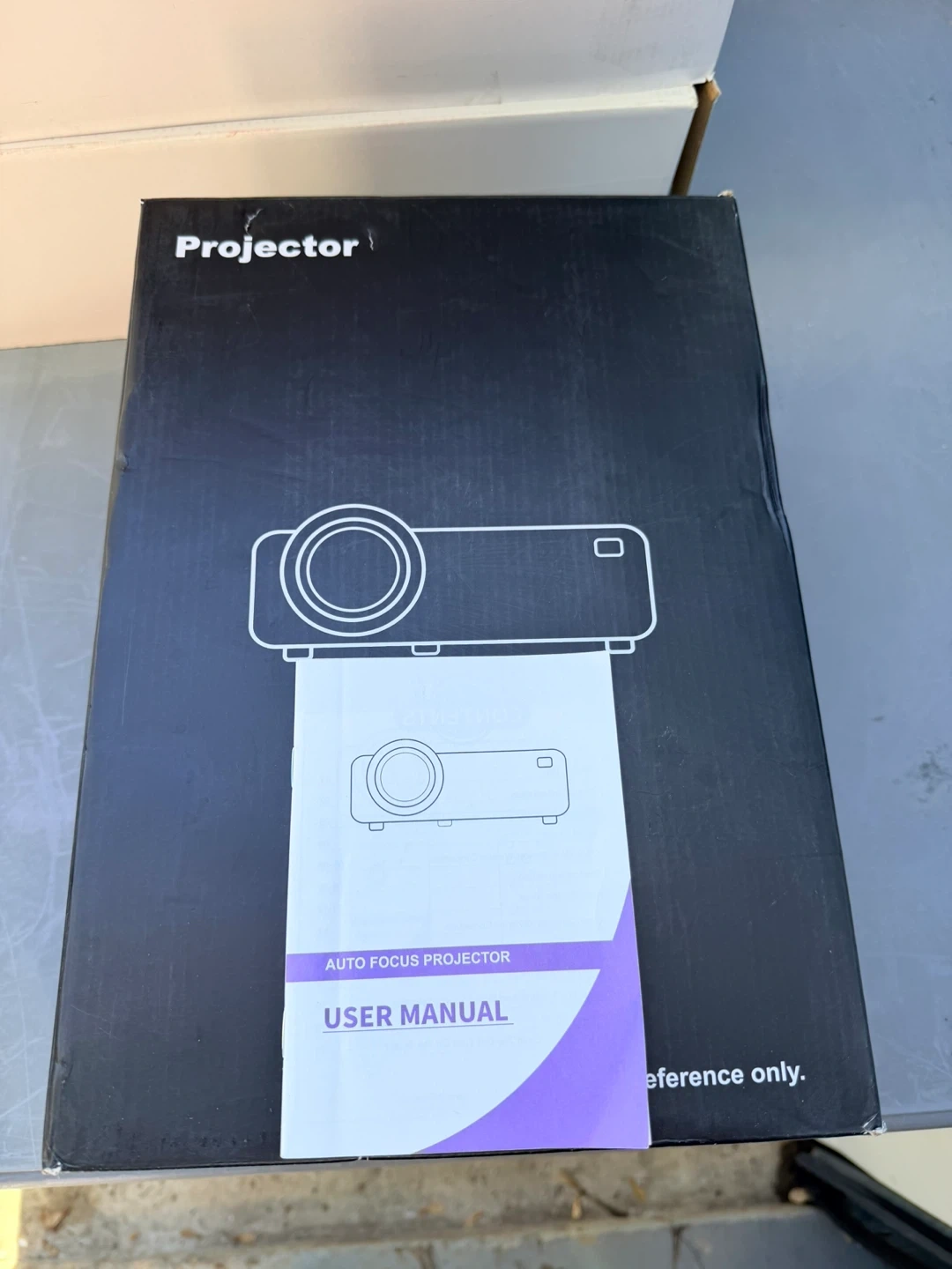 This is an auto focus projector. It's in its original box and includes the user manual. Great for presentations or movie nights!