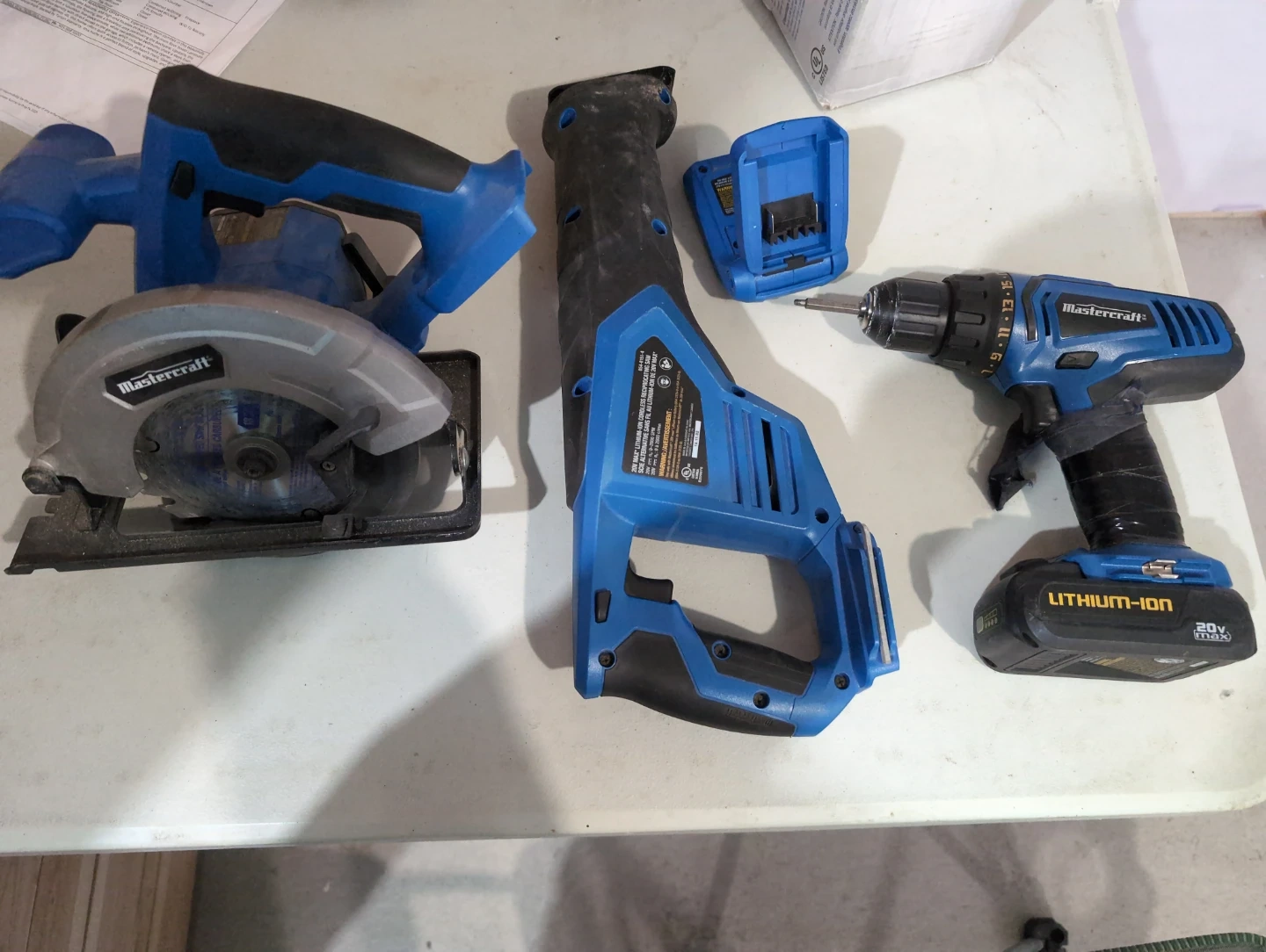 This set includes a circular saw, reciprocating saw, and a drill. All tools are Mastercraft brand and 20V MAX Lithium-Ion.