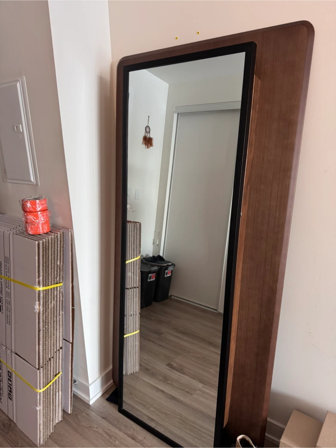 Full-length wood framed mirror