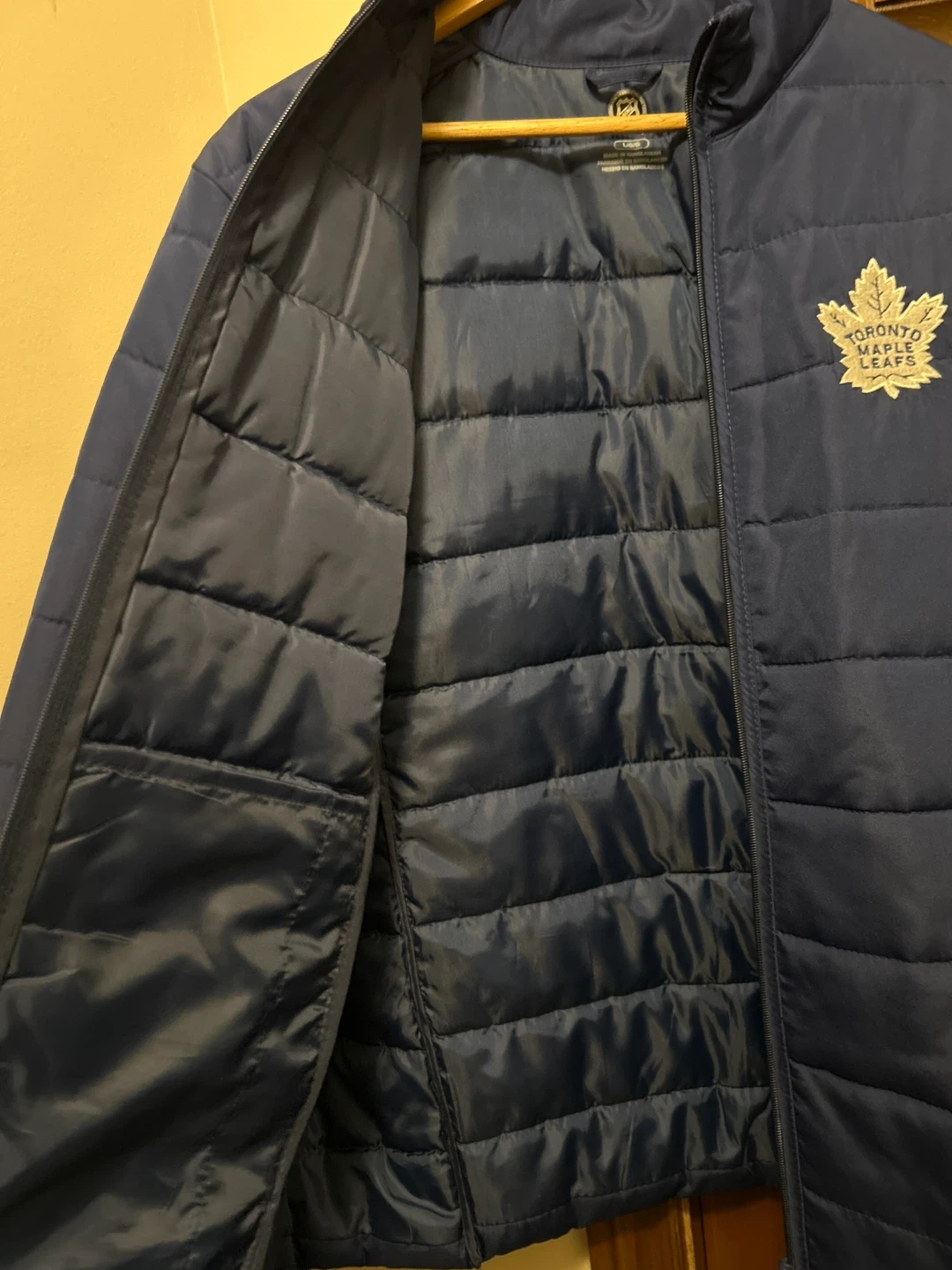 Keep warm with this Toronto Maple Leafs puffer jacket! It's a size large and in great condition. Perfect for showing your team spirit during those chilly Canadian Fall weather. It’s got 2 inner pockets and 2 outer pockets.