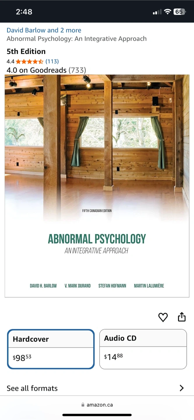 This is the Loose Leaf Edition for Abnormal Psychology: An Integrative Approach. It's the 5th Canadian Edition.