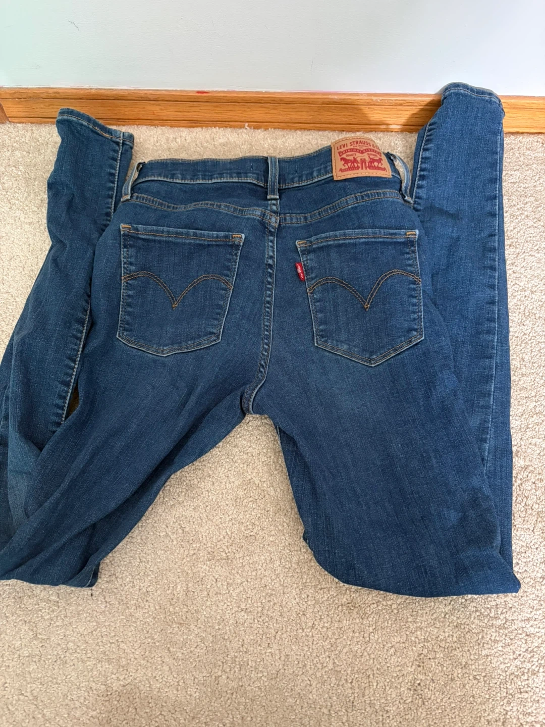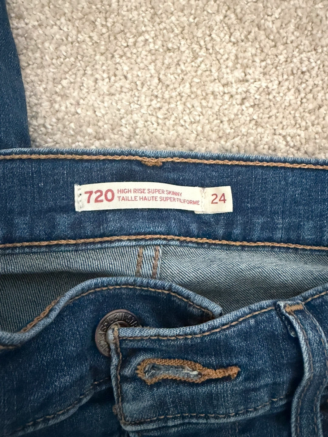Levi's 720 High Rise Super Skinny Jeans in a size 24. These dark wash jeans offer a comfortable and flattering fit. They're made from denim.
