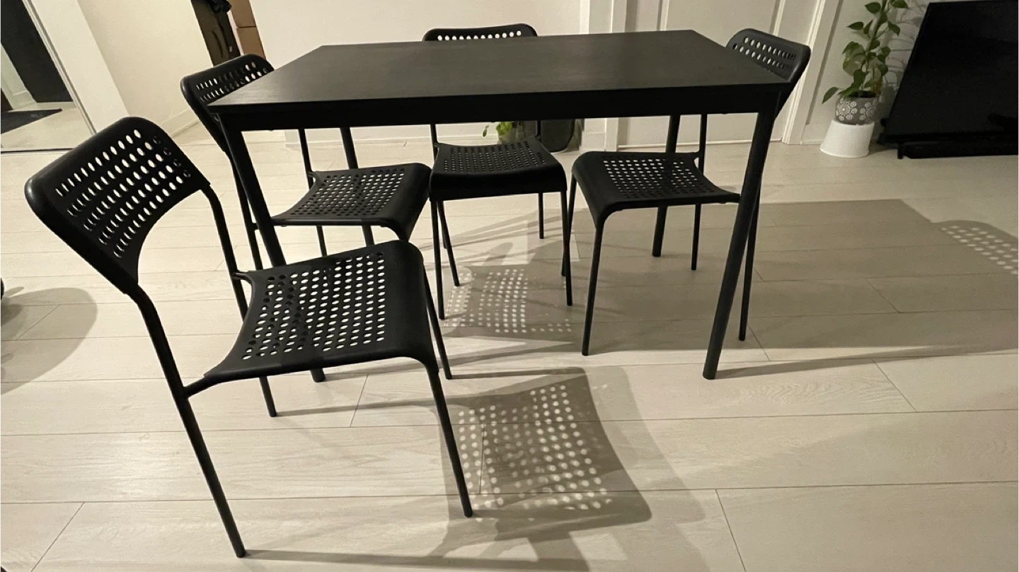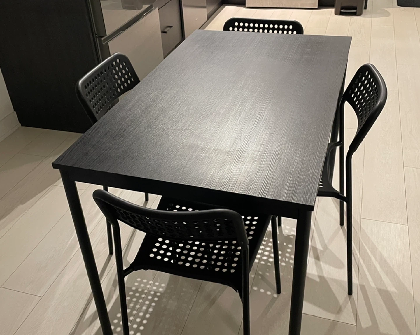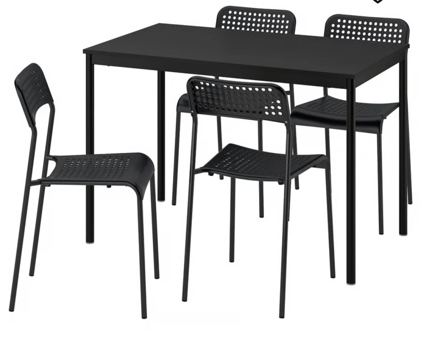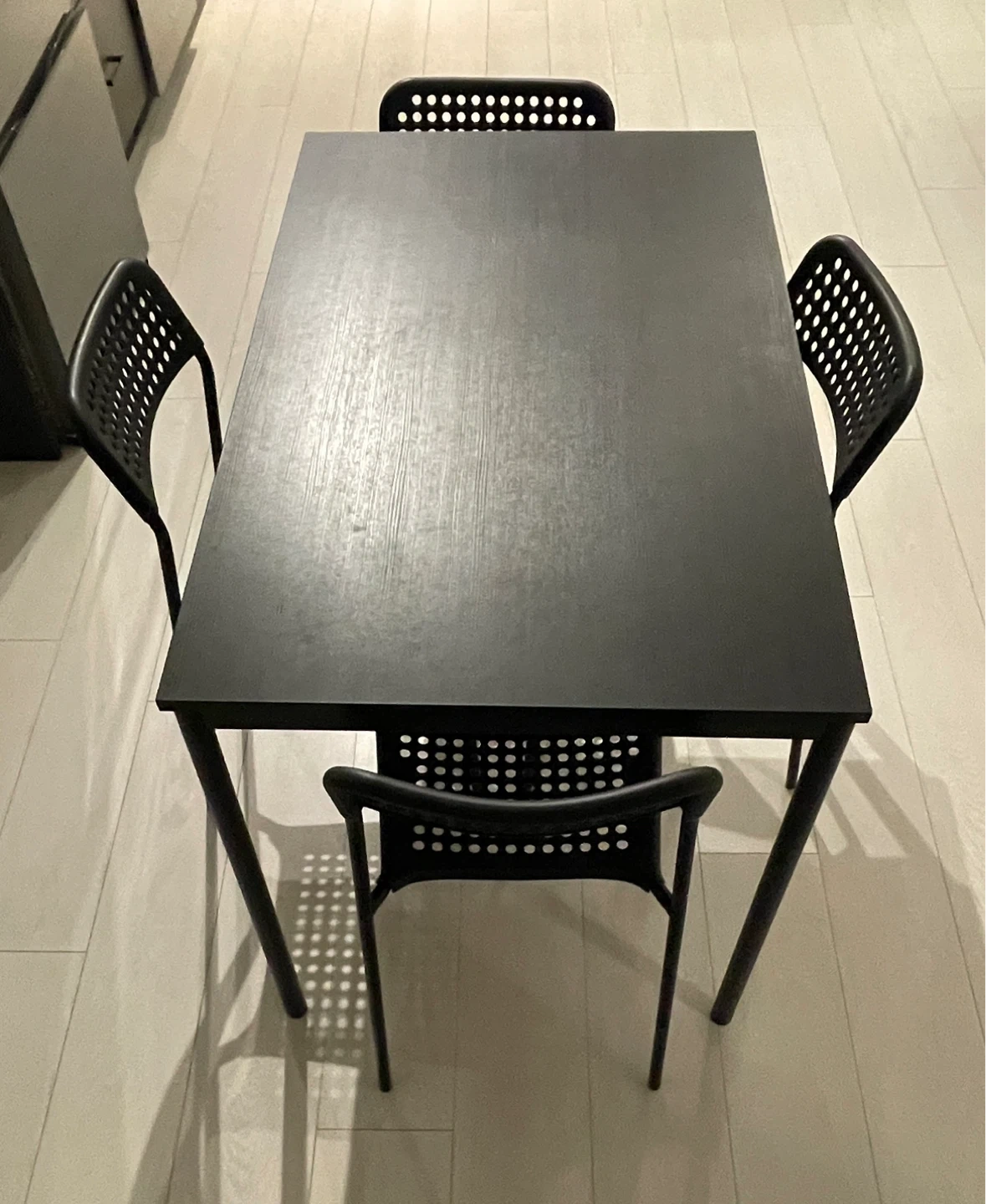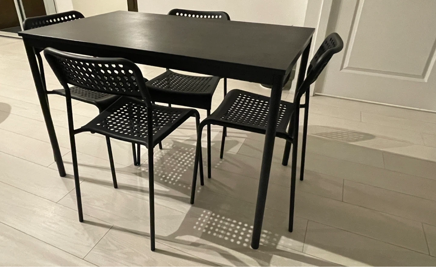 Selling a black dining table with four matching chairs. The set is in very good condition and would be perfect for a small dining area or kitchen. A great addition to any home!