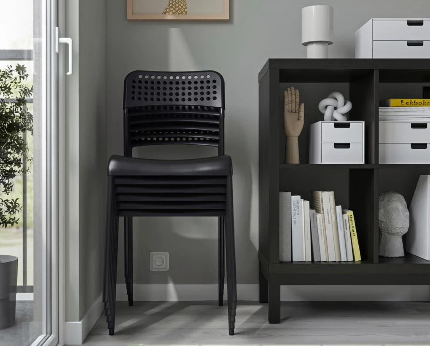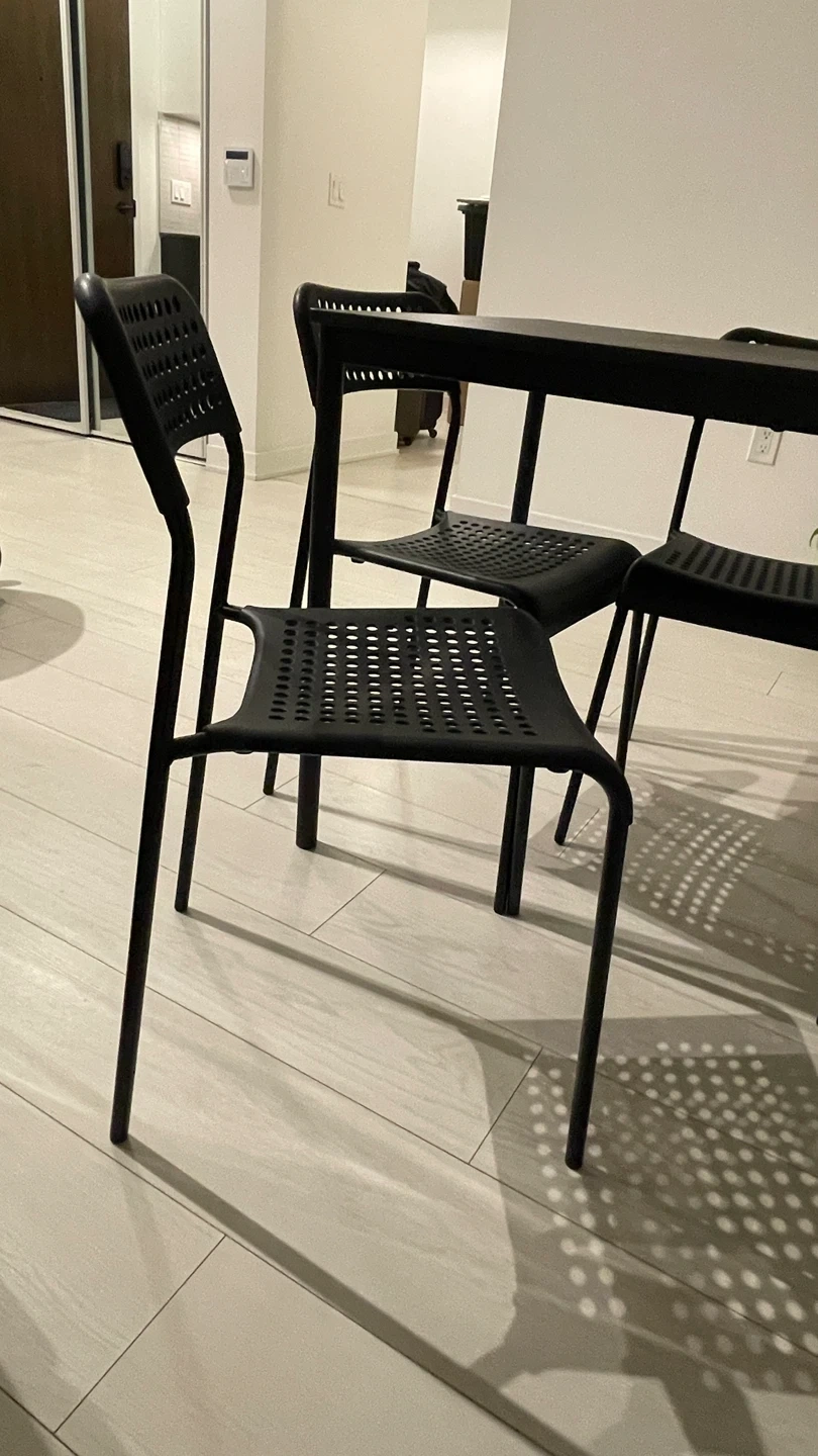 ▪️ 4 Chairs , black , lightweight chair, made of powder-coated steel and plastic, is easy to carry and to wipe clean.