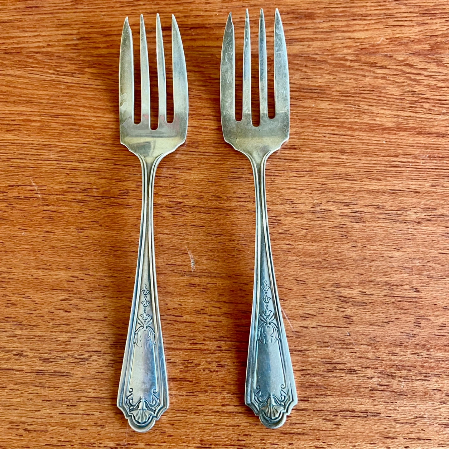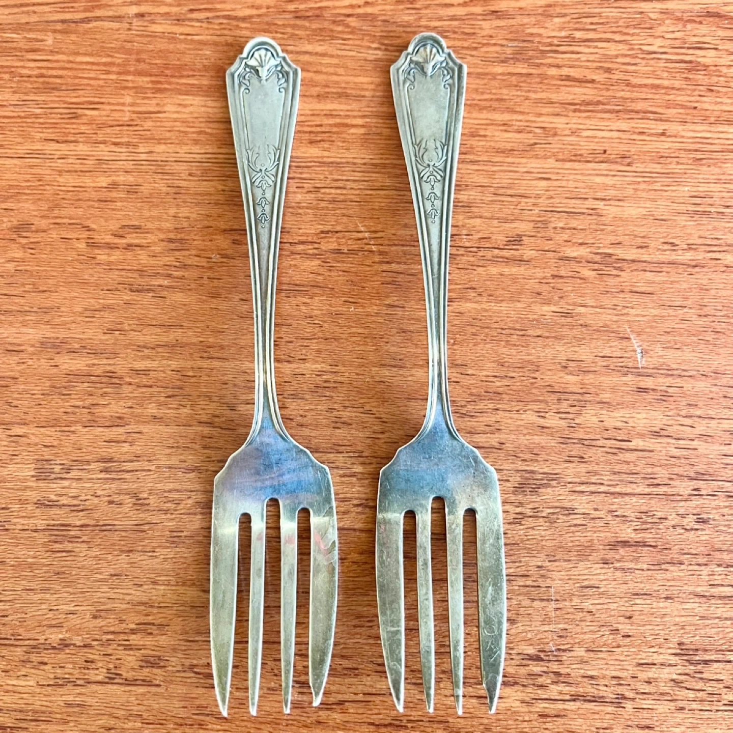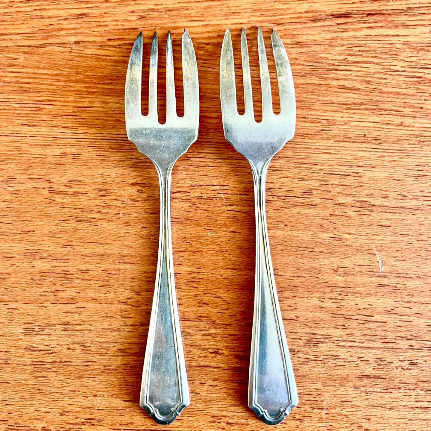 Pair of Watson company Queen Louise pattern sterling silver pastry forks, c1912.