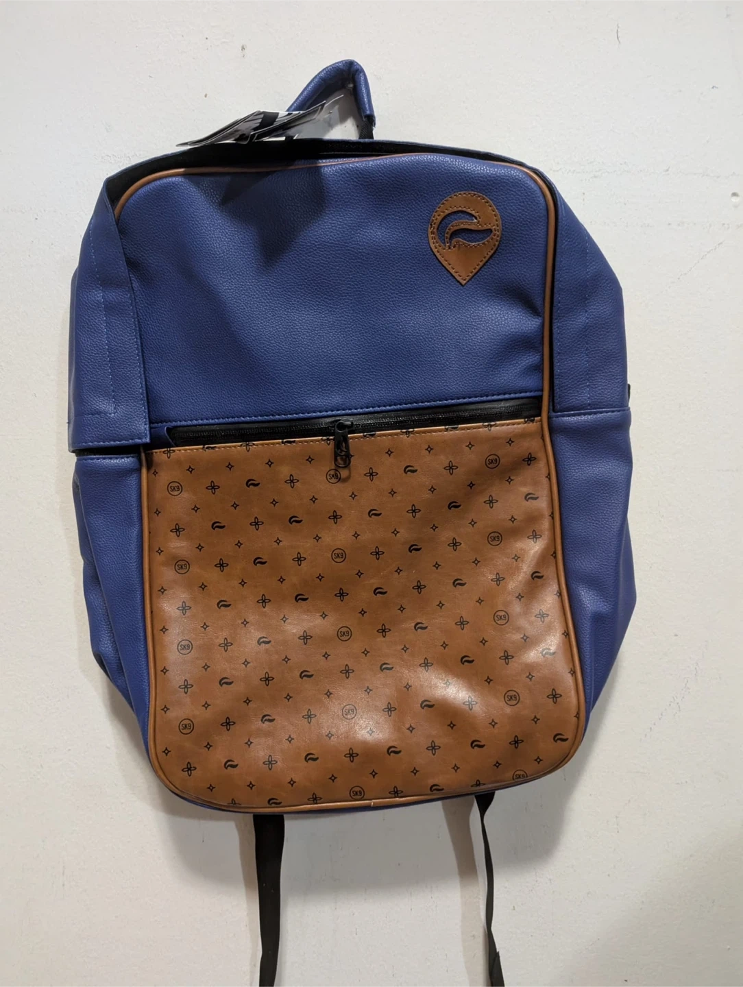 Selling a brand new backpack in blue and brown! It's never been used and comes with the original warranty tag. The bag features a unique pattern on the front pocket and is perfect for everyday use or travel