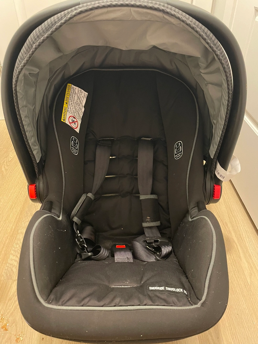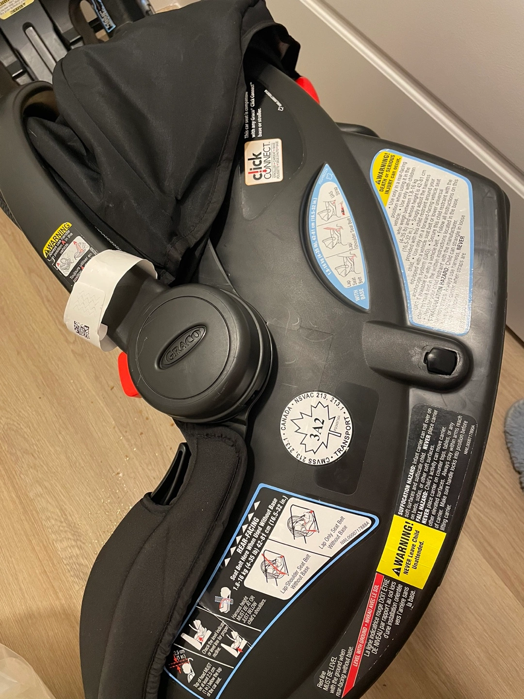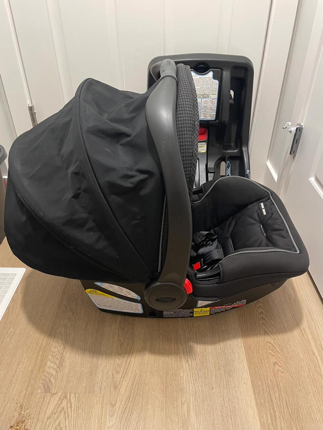 Black infant car seat with Click Connect feature. Includes canopy. Used but in good condition.