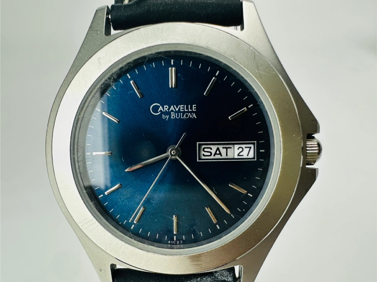 Bulova Caravelle Watch – Blue Dial, Day & Date (New Battery)