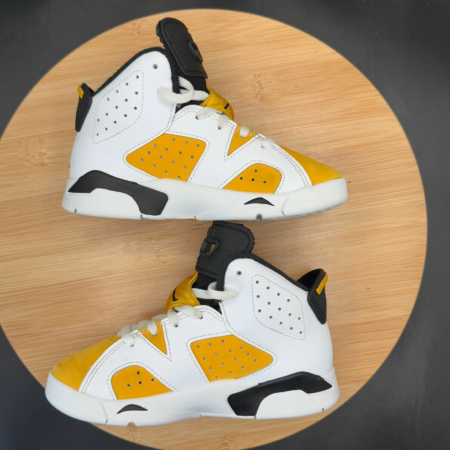 Nike Air Jordan 6 Retro (PS) Kids Size 11C White/Yellow Ochre