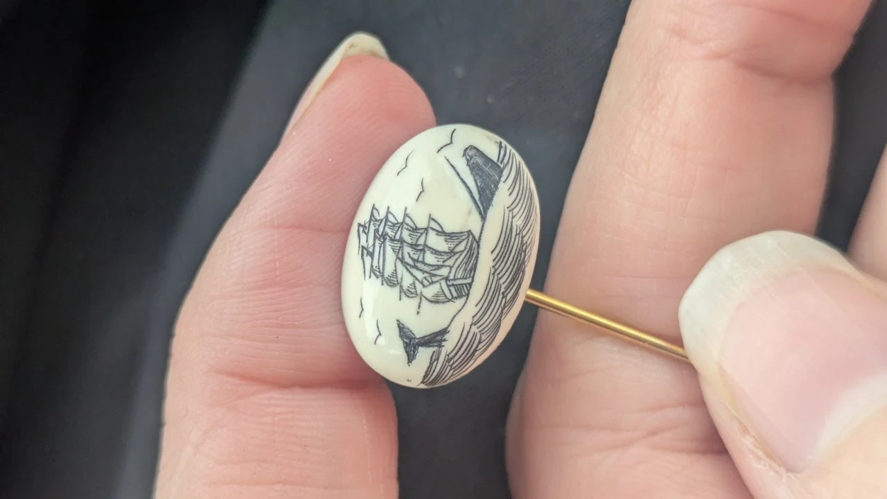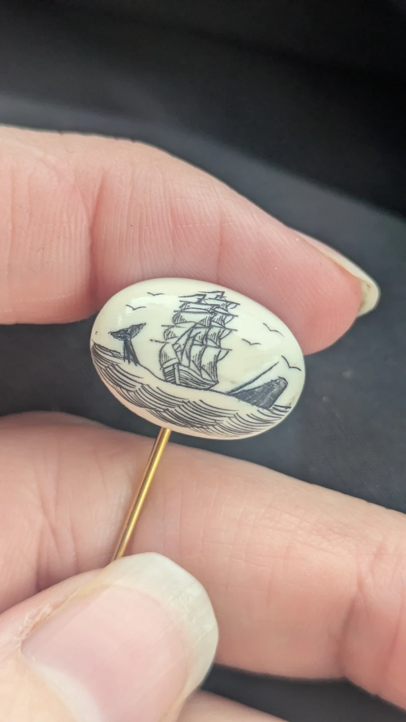 Vintage Scrimshaw Ship and Whale Stick Pin