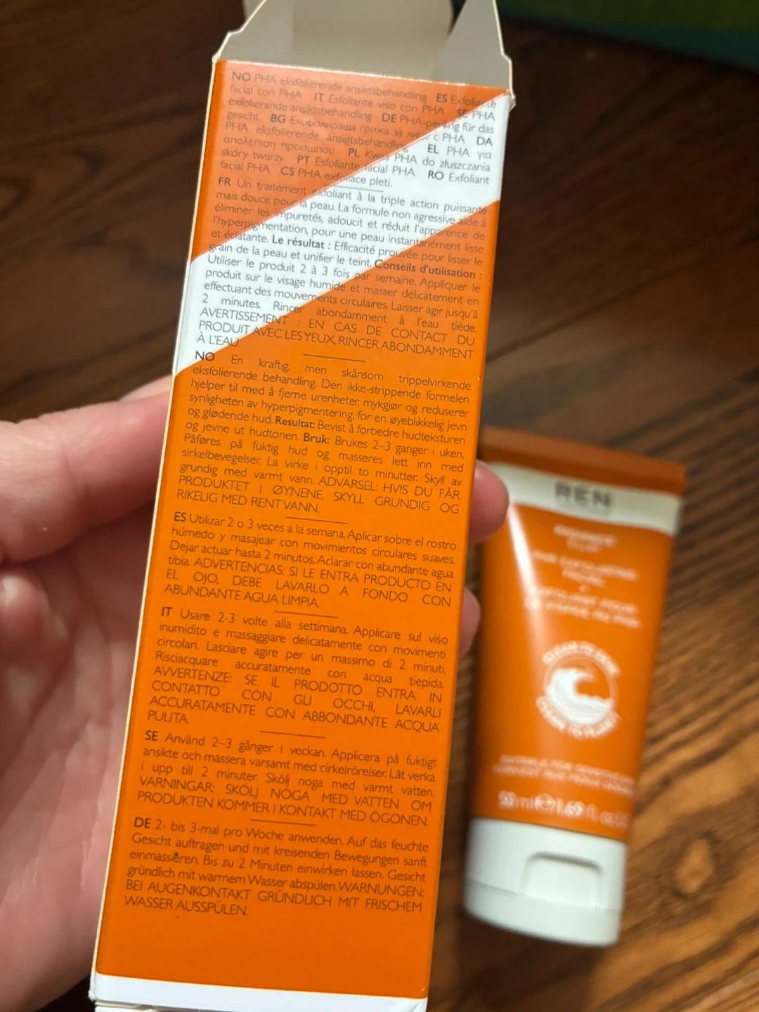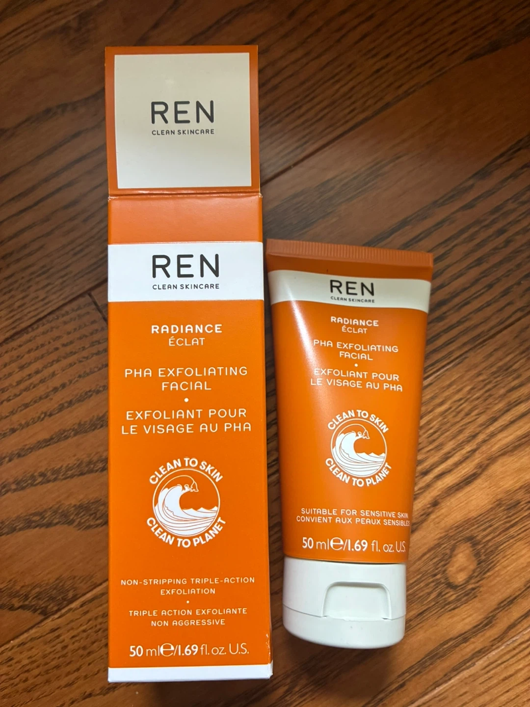 This is the REN Clean Skincare Radiance PHA Exfoliating Facial. It's a non-stripping triple-action exfoliating treatment. Suitable for sensitive skin, it comes in a 50ml tube. This facial helps to resurface and refine skin texture.