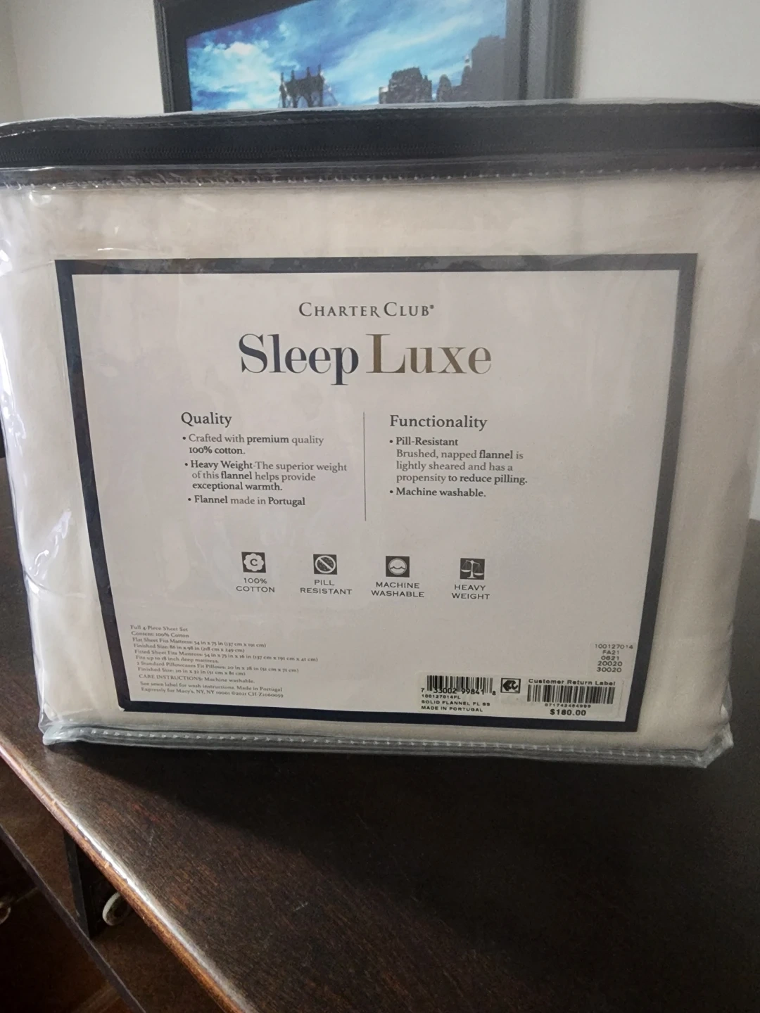 Charter Club Sleep Luxe FULL sheet set. Crafted with premium quality 100% cotton. Brushed, napped flannel is lightly sheared and has heavy weight to reduce pilling. Machine washable. Made in Portugal.
