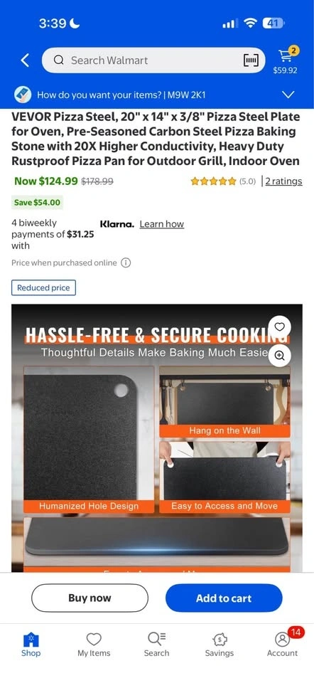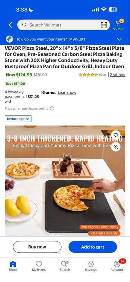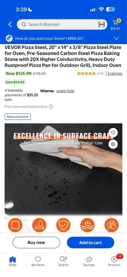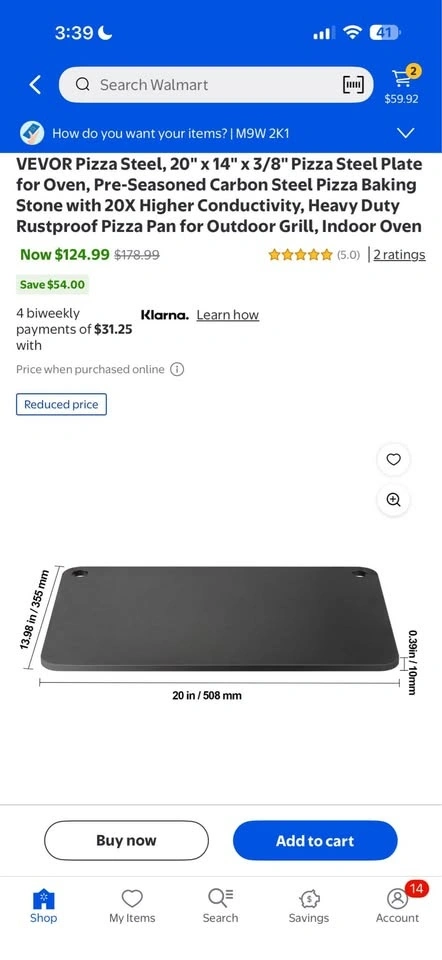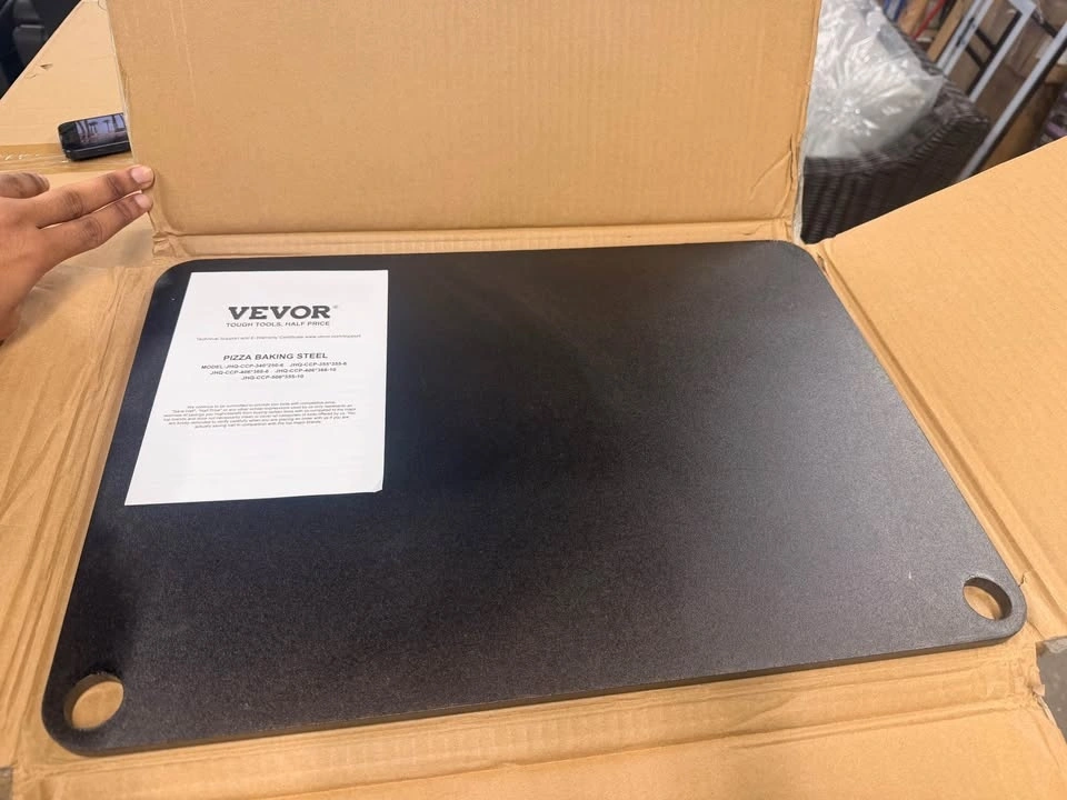 Brand new VEVOR Pizza Steel, 20" x 14" x 3/8". This pre-seasoned carbon steel plate offers rapid and even heating with 20x higher heat conductivity than ceramic stones for a crispy pizza. Its 3/8" thickness retains heat longer. The steel is heavy-duty, rustproof, and easy to clean with just water and a cloth. Features a convenient thumb hole for hanging and polished edges for safety. Great for indoor ovens or outdoor grills, and can also be used for bread, cookies, steaks, and more. Located at 71 Judson St, Etobicoke (side entrance). More items like this on my page.