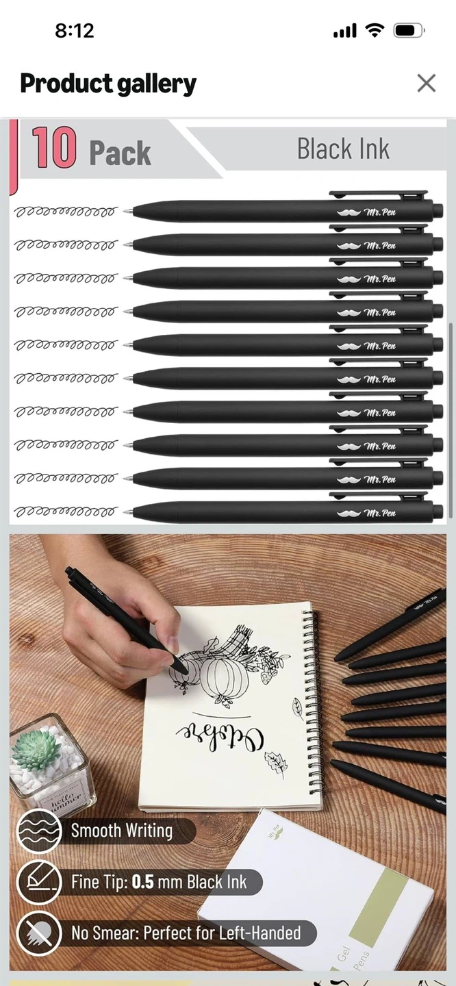New- Mr. Pen Black Ink Pens Set (8 Count)
