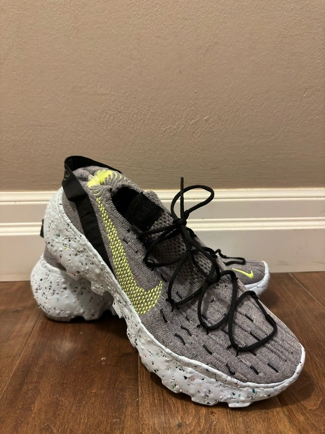 Step into sustainable style with these Nike Space Hippie 04 shoes. Crafted with recycled materials, these runners offer a unique look and eco-friendly comfort, perfect for everyday wear. These have been worn. Key features: * Eco-friendly construction using recycled materials * Unique Crater Foam midsole for cushioning * Stylish and futuristic design Looking to sell for $110 CAD. I'm cleaning out my closet and these need a new home. If the ad's up, they're available!