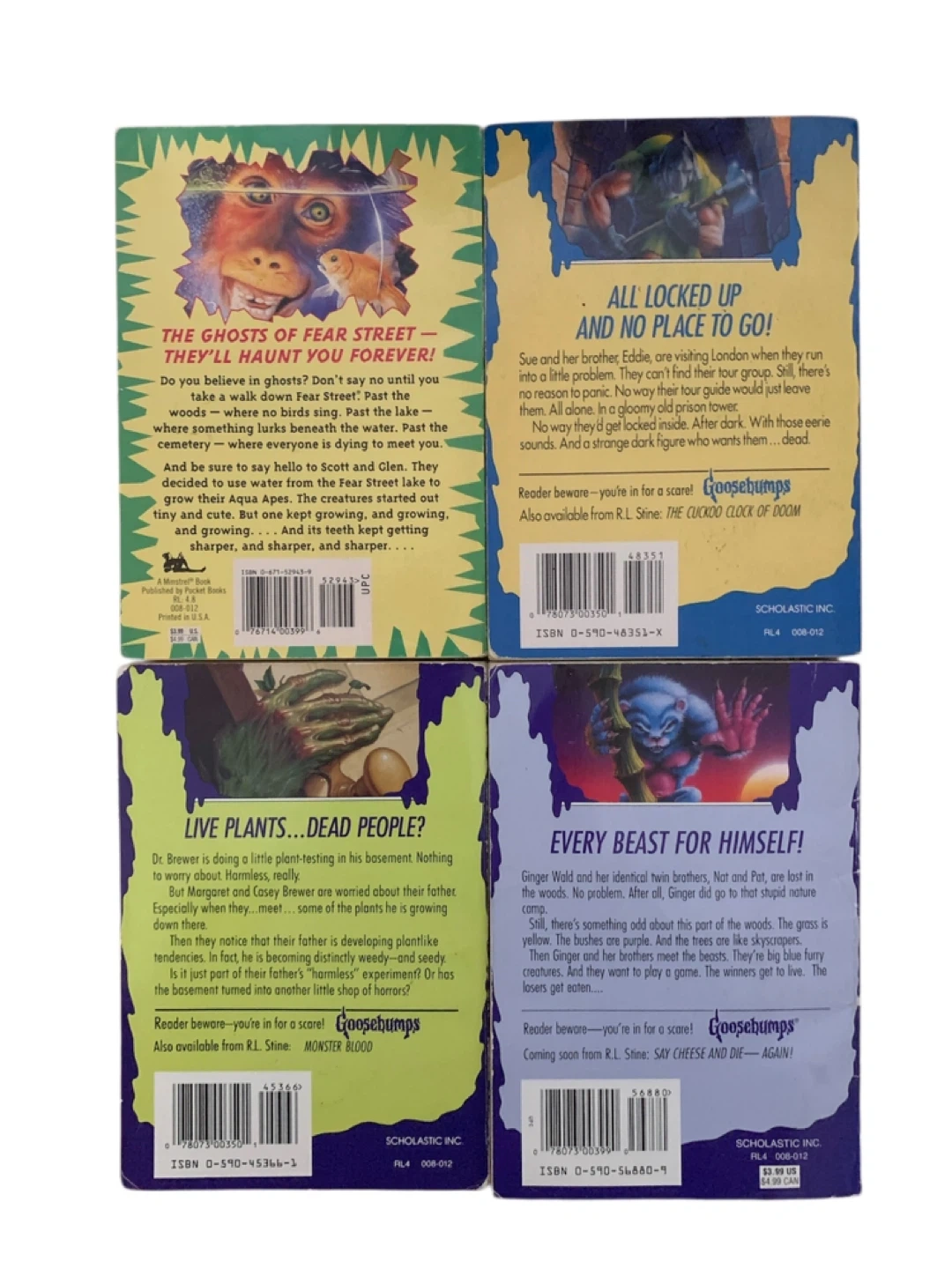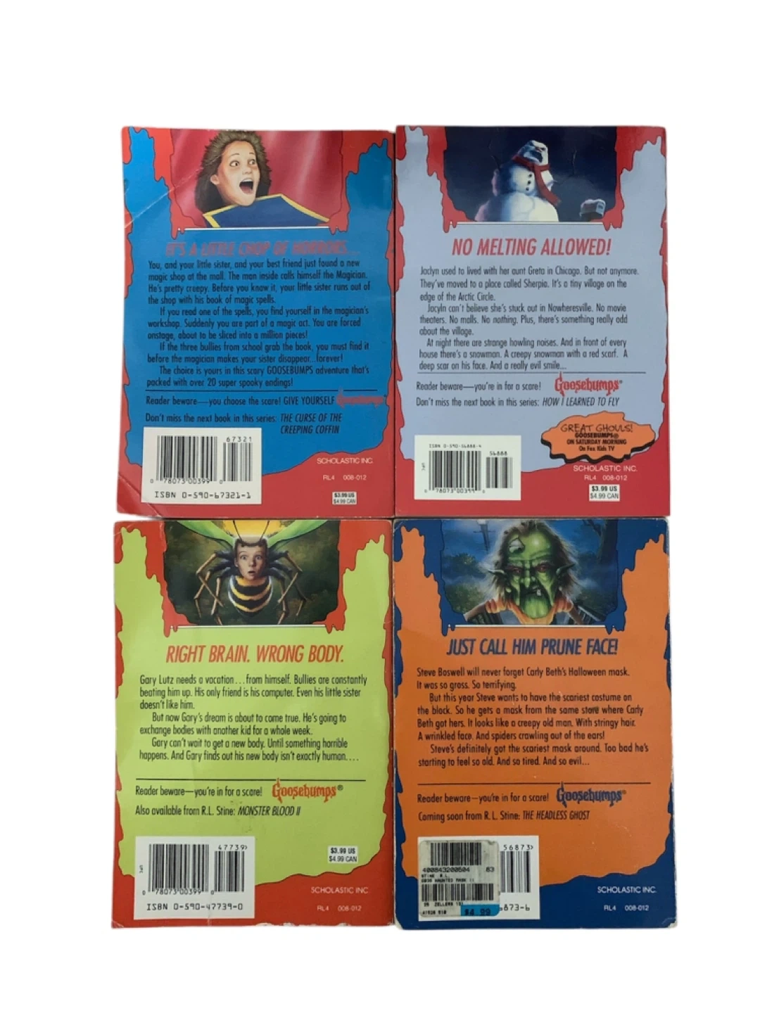 👻 R.L. Stine Goosebumps & Give Yourself Goosebumps Book Lot – Vintage Scholastic Horror Collection! Step back into the spooky ’90s with this awesome set of 10 pre-owned Goosebumps and Give Yourself Goosebumps books by R.L. Stine! Perfect for collectors, horror fans, or anyone wanting a nostalgic throwback to the classic Scholastic paperbacks that started it all. ⸻ 📚 Included Titles: 1. Welcome to Dead House 2. Stay Out of the Basement 3. The Beast from the East 4. A Night in Terror Tower 5. Beware, The Snowman 6. Why I’m Afraid of Bees 7. The Haunted Mask II 8. The Deadly Experiments of Dr. Eeek (Give Yourself Goosebumps #4) 9. Under the Magician’s Spell (Give Yourself Goosebumps #7) 10. The Attack of the Aqua Apes (Ghosts of Fear Street) ⸻ 🕷️ Condition: All books are pre-owned and in good vintage condition. Covers may show minor wear or creasing from age, but all pages are clean and intact. Authentic Scholastic 1990s editions great for collectors or nostalgic readers. ⸻ 💲 Pricing Options: Individual Books $2.50 each Full 10-Book Set $22.00 total Bulk Buy (Any 5 Books) $10 flat ⸻ 🏪 Available from: TSM Department Store 📍 Pickup Location: New Hamburg, ON (exact location provided upon confirmed pickup) 📧 Email: tylermcgill77@gmail.com 📱 Text for fastest response: 519-830-9825