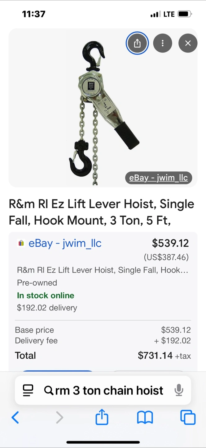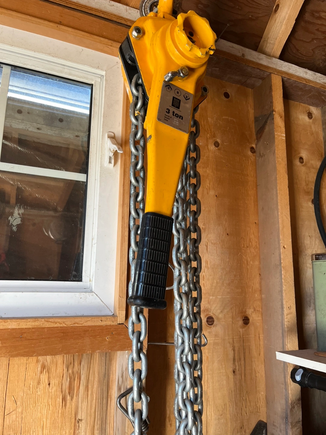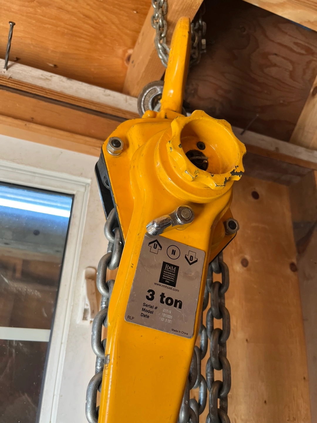 Selling a R&M 3 ton chain hoist. It's in pre-owned condition and ready for use. A reliable tool for heavy lifting!