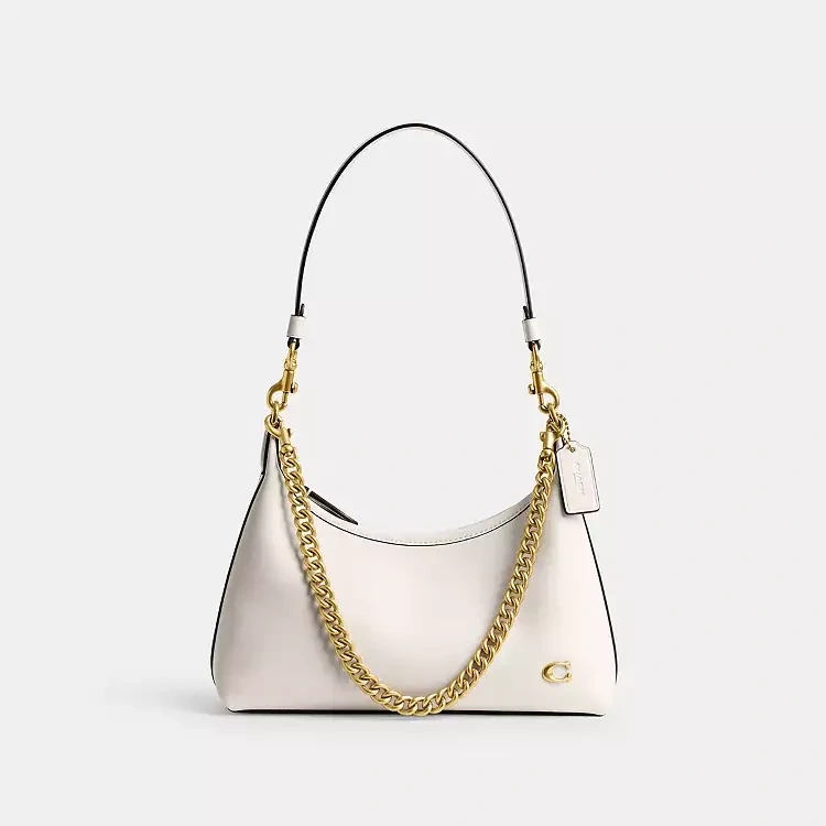 A Coach Juliet Shoulder Bag 25 in white glovetanned leather. It's a stylish handbag with a gold chain detail. Size is one.