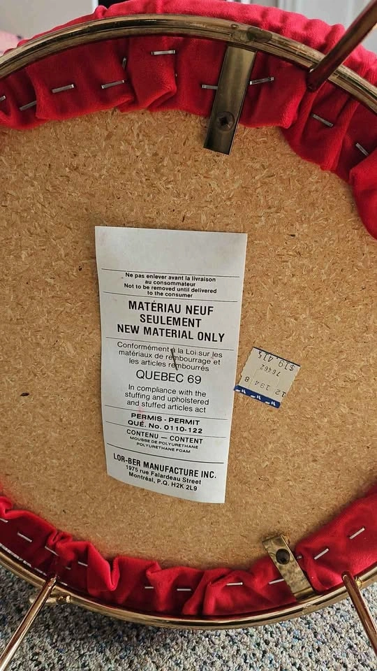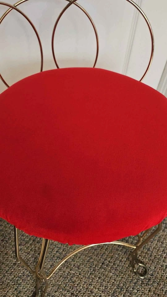 Vintage 1960s made in Canada, red velvet stool, gold tone. Great conditions.