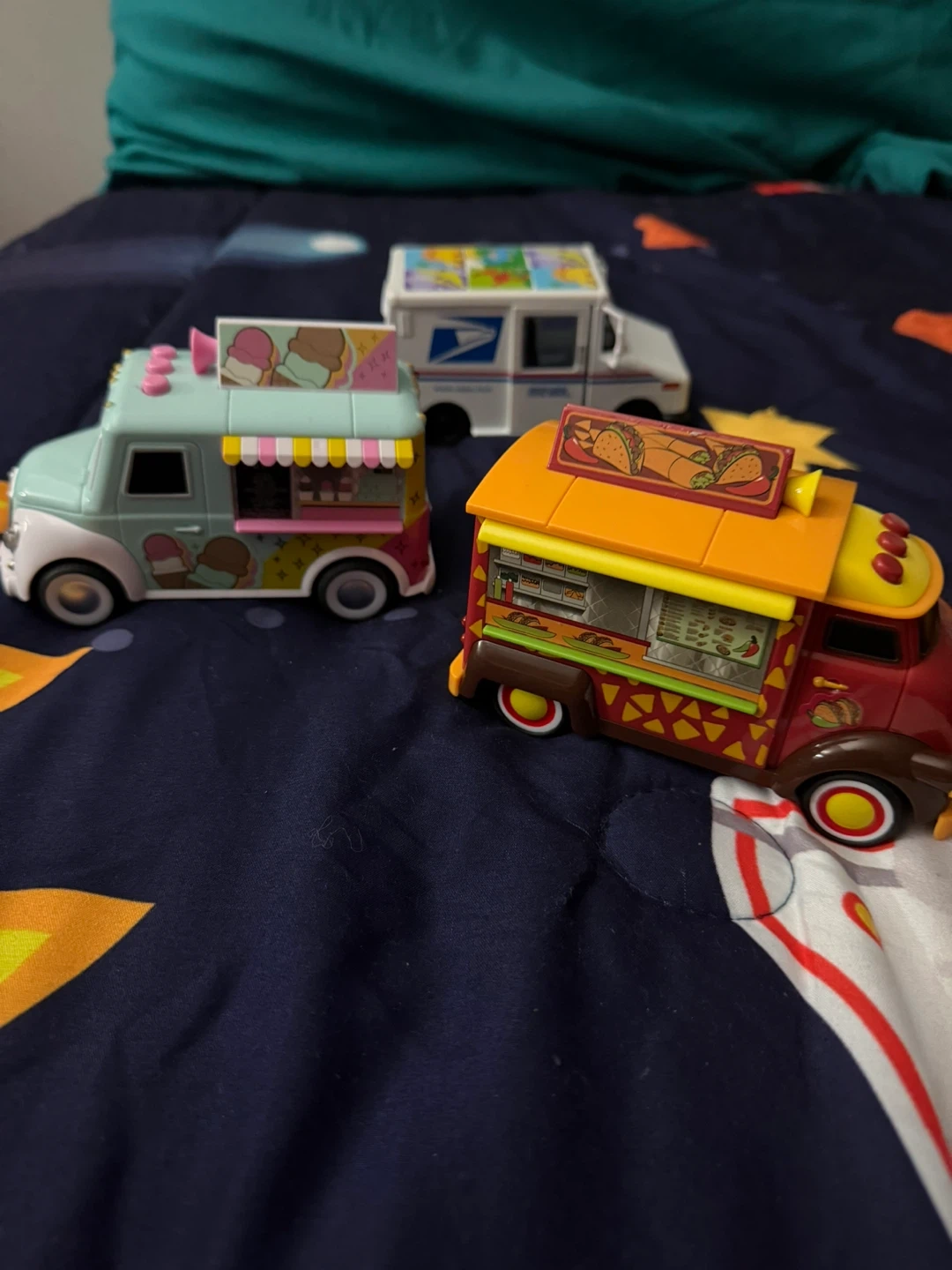 Selling a lot of Brio light up food trucks. Includes an ice cream truck, mail truck, and taco truck. Great for kids! They play songs and beep.