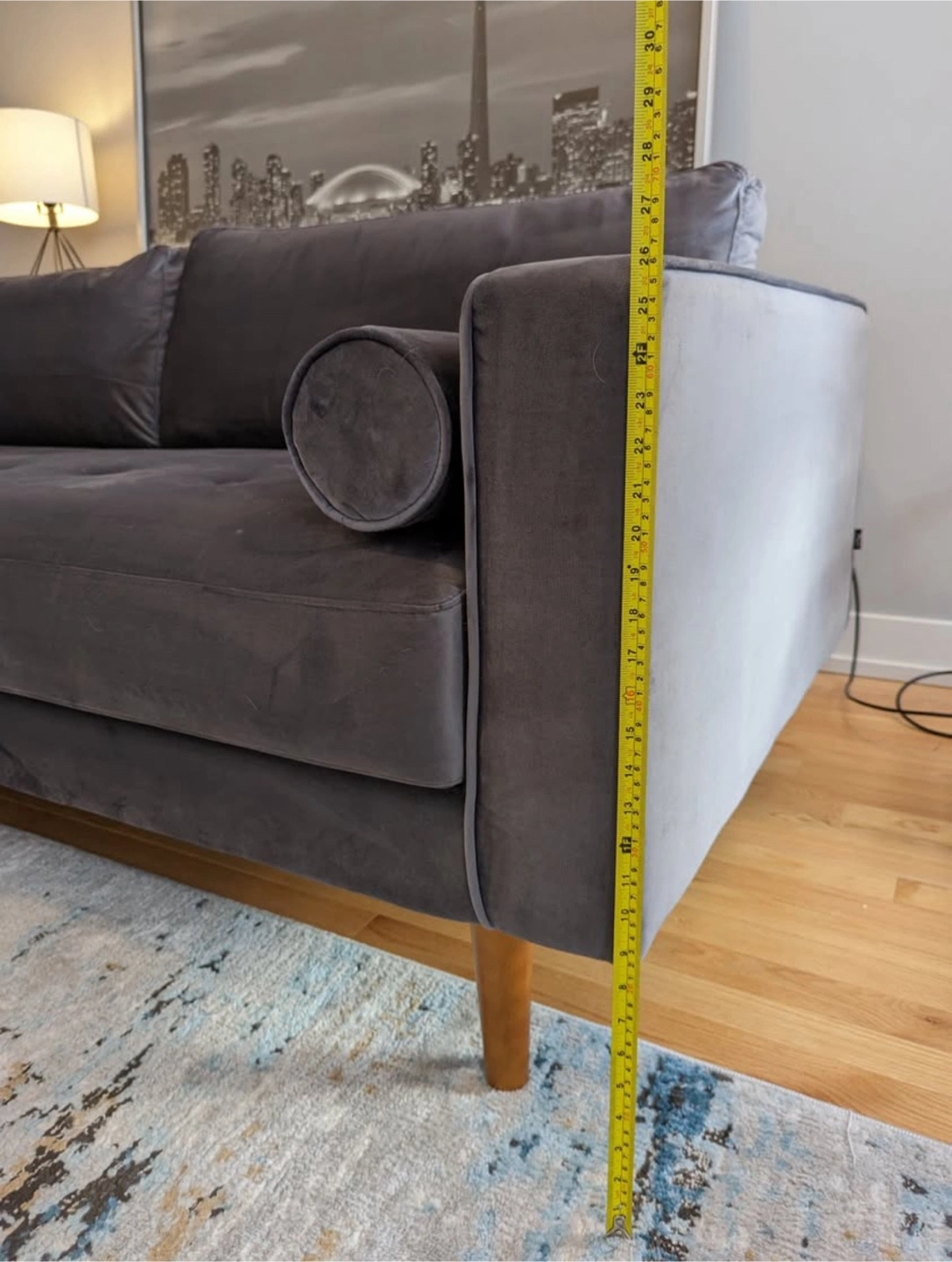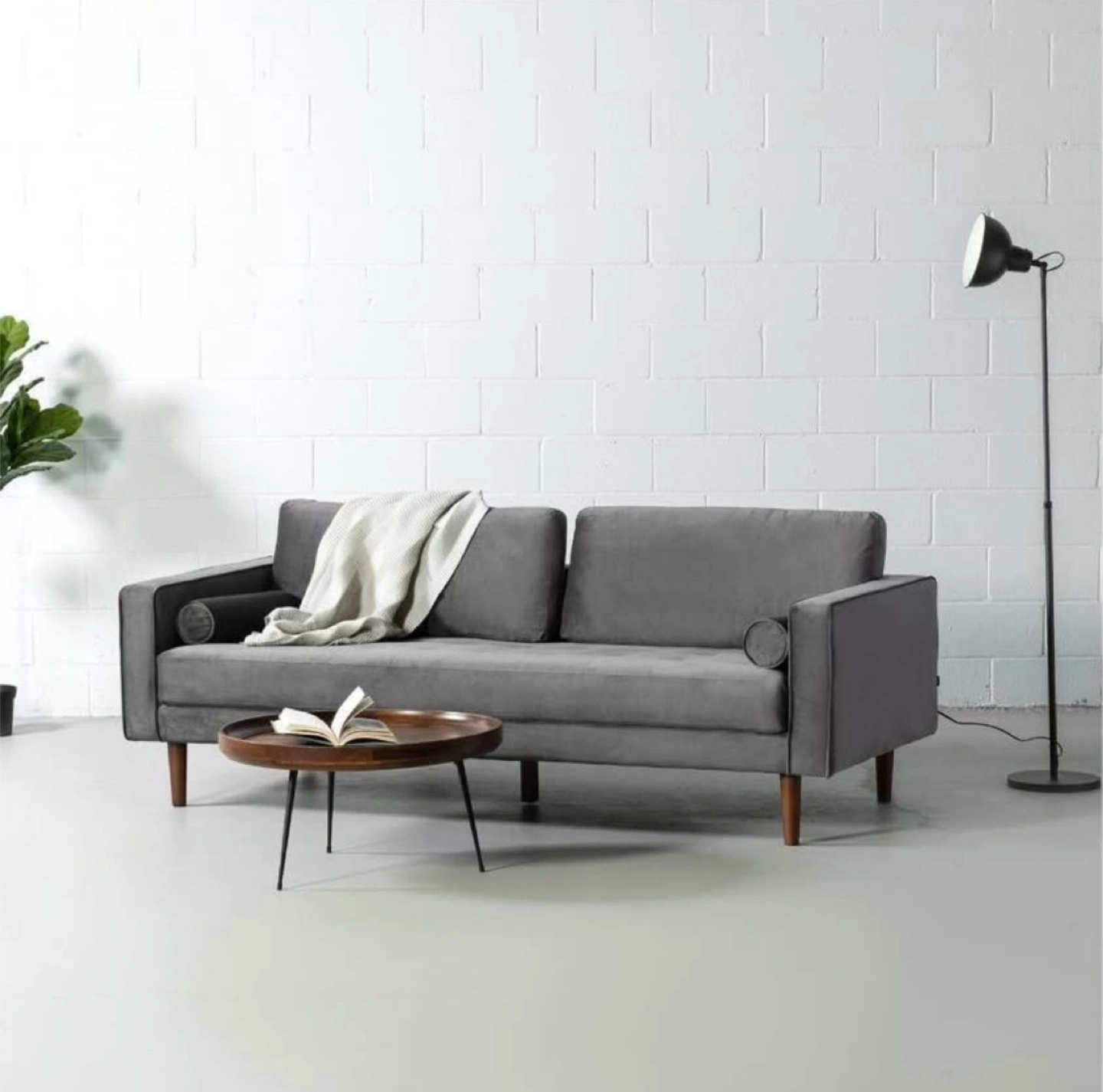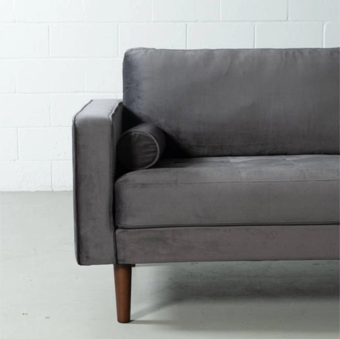 Mid-Century Modern Velvet Sofa - Grey