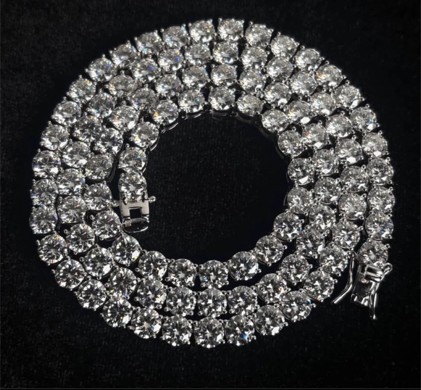 Fully iced 5mm tennis chain featuring precision-cut D Color VVS1 moissanite stones for maximum brilliance and fire.