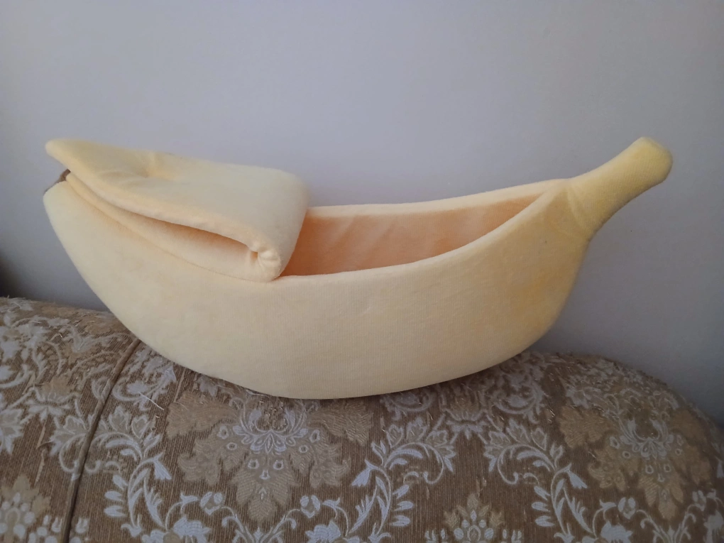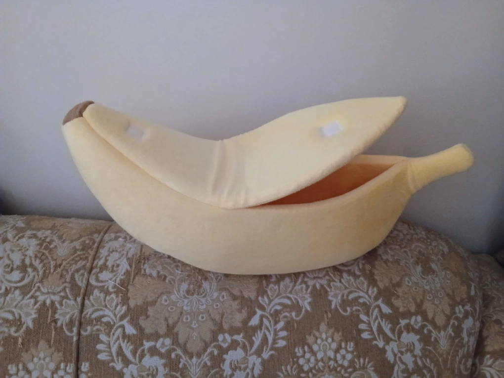 This cute banana-shaped bed is super soft and cozy for your feline friend. It's a fun and comfy spot for them to nap or play. The bed is made from plush material and has an opening for easy access.