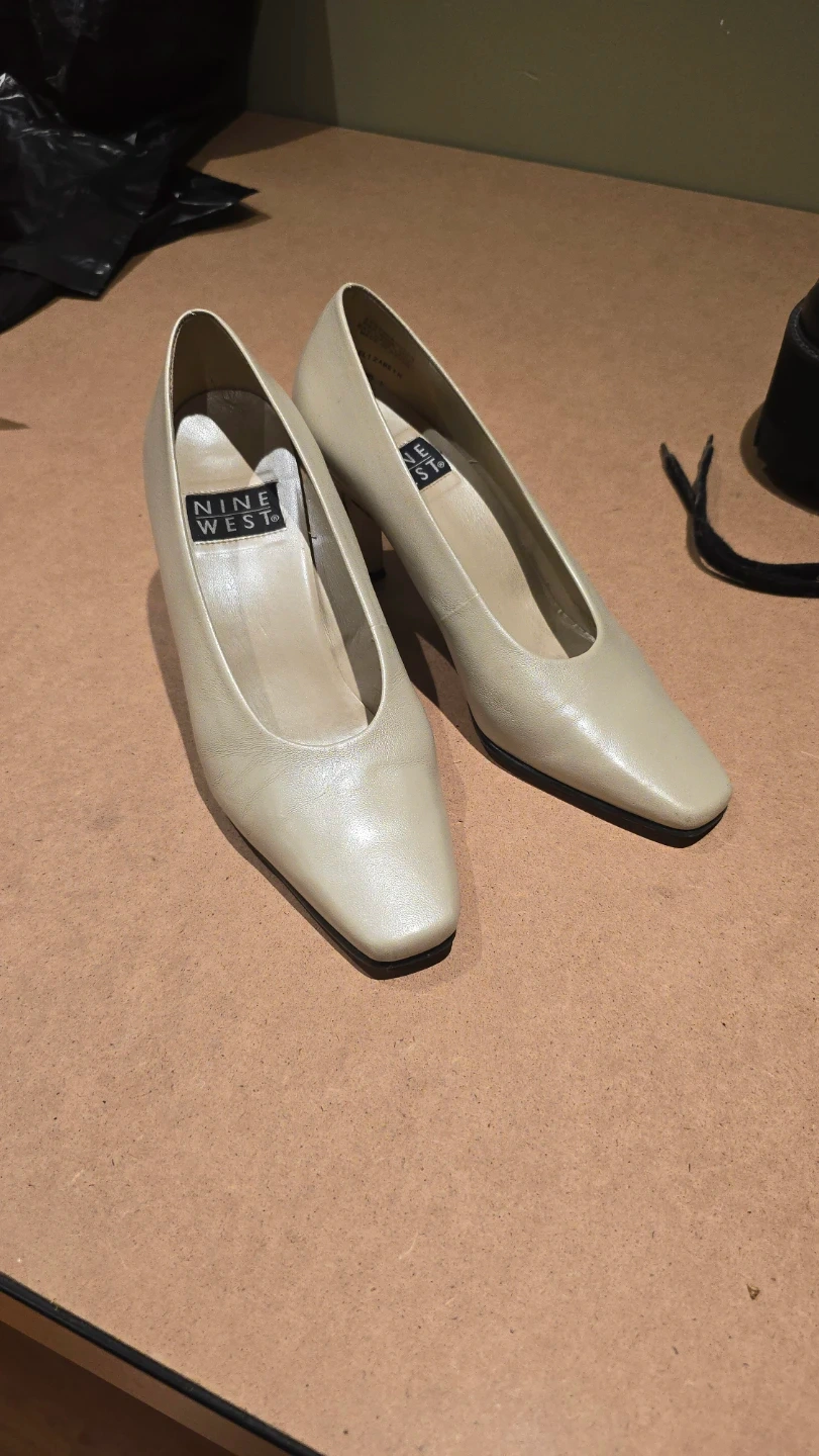 Vintage Nine West Women's Beige Leather Heels - Size 5.5M