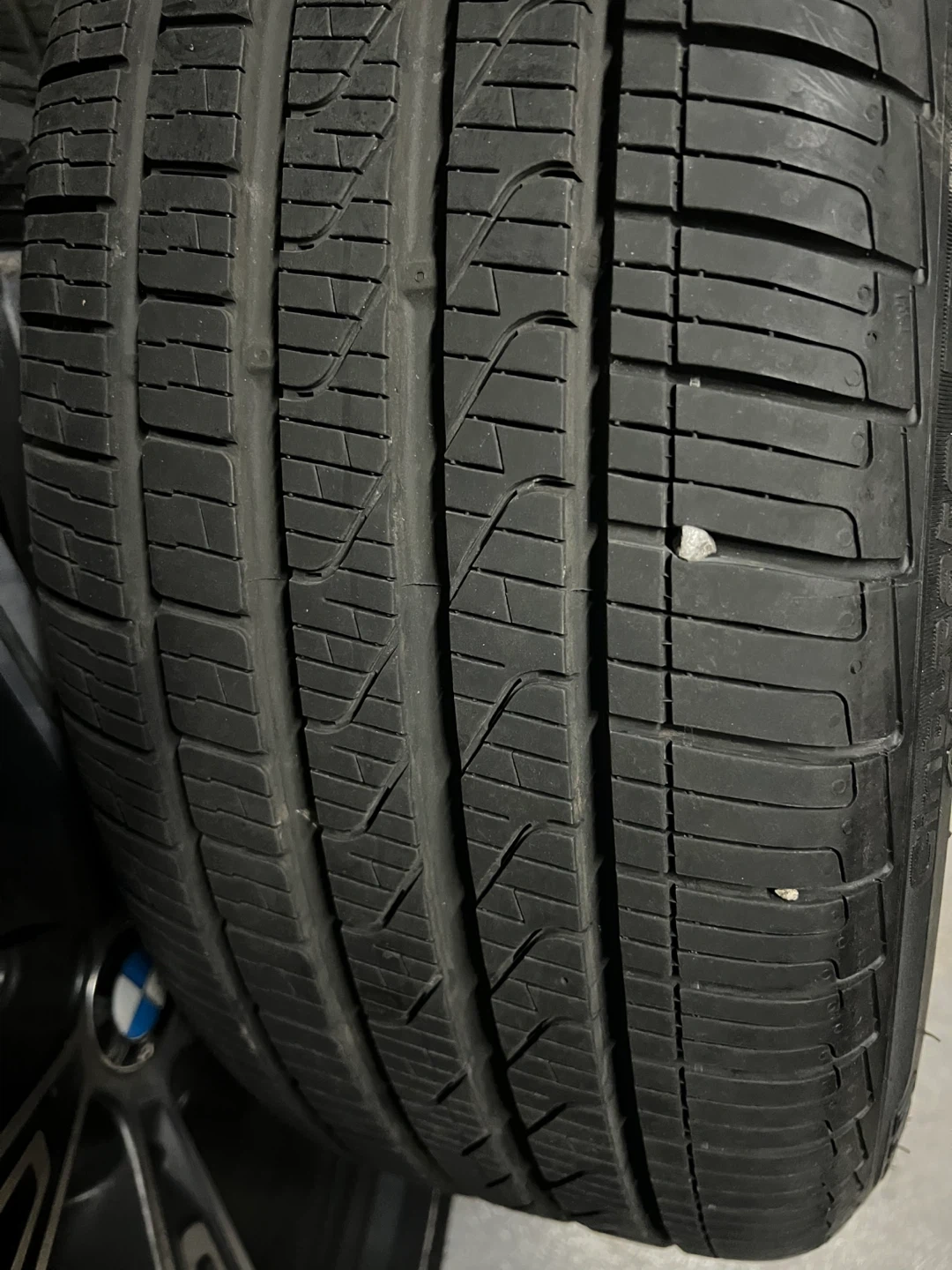 Set of four BMW rims with 3 all-season flat run tires (Pirelli Cin p7 225 40 19). Two tires were purchased summer of 2025 and were used less than 1000 kms. Third tire was lightly used for 4 seasons and still has very good tread.