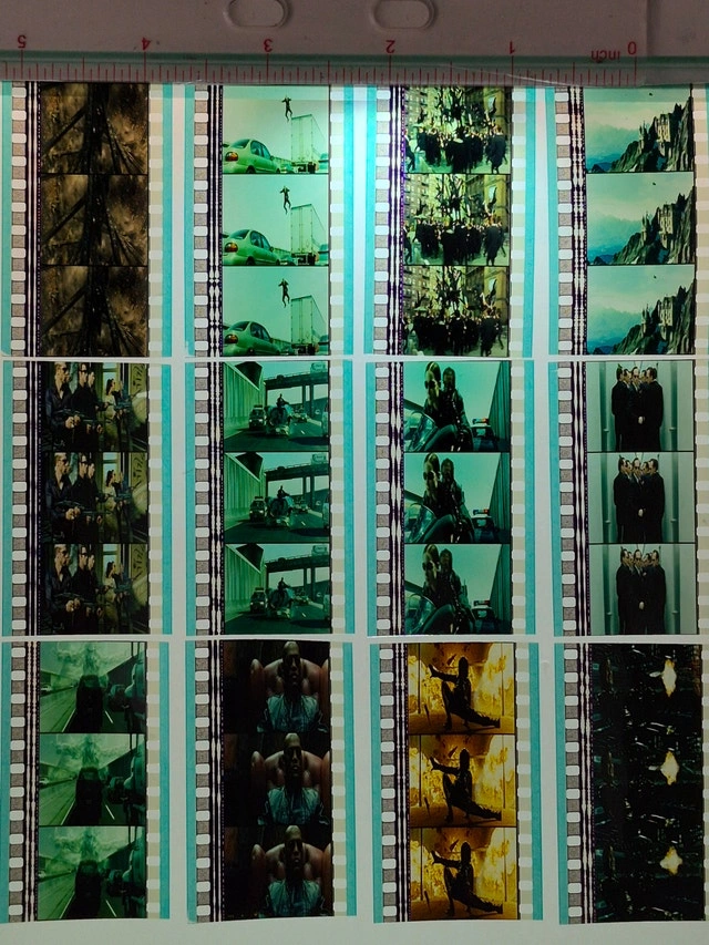Original 35mm film cells from the theatrical trailer for THE MATRIX RELOADED. This is a bundle of various scenes. Price is $40. Ask about our other film choices.